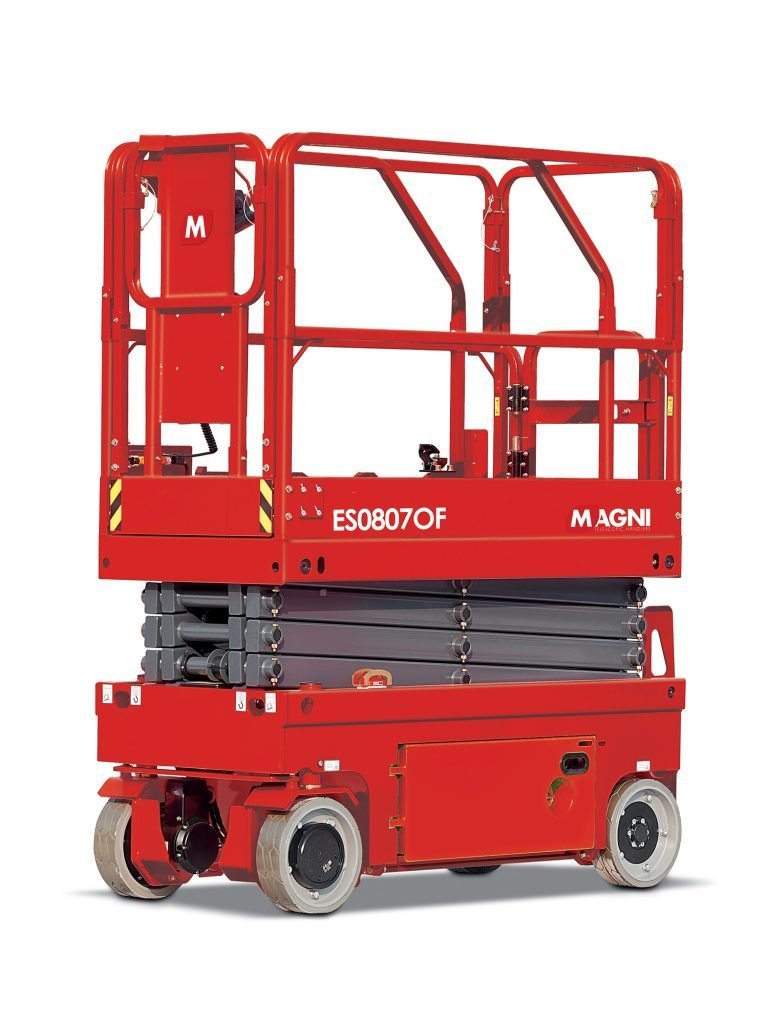 MAGNI ES0807OF – Elektro-Scherenbühne – 7,8 mtr. (ölfrei) Die neue elektrische, ölfreie Scherenbühne ES0807OF bietet eine maximale Arbeitshöhe von 7,80