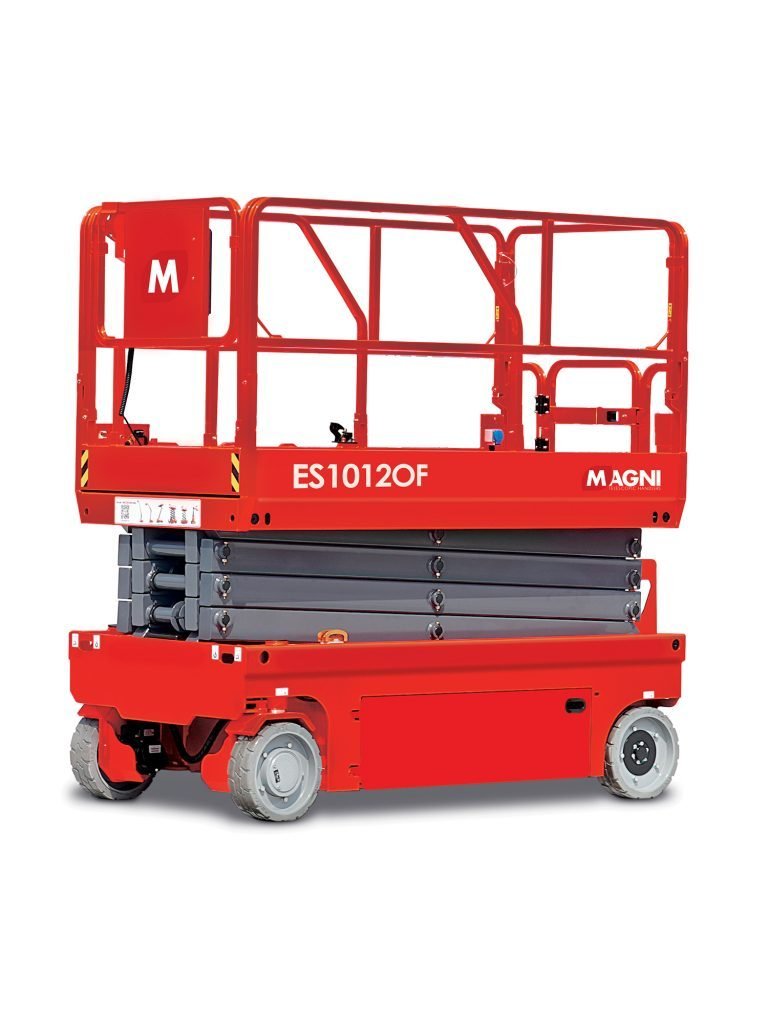 MAGNI ES1218RT – Elektro-Scherenbühne 12,0 mtr. Diese geländegängige vollelektrische Scherenbühne bietet noch mehr Flexibilität auf der Baustelle. Sie ist serienmäßig