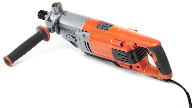 HAND-KERNBOHRGERÄT Elektrische Handbohrmaschine (Kernbohrmaschnine), die sowohl für Trocken- als auch für Nassbohrarbeiten geeignet ist. Dank eines neuen elektronischen Positionierungssystems verbindet