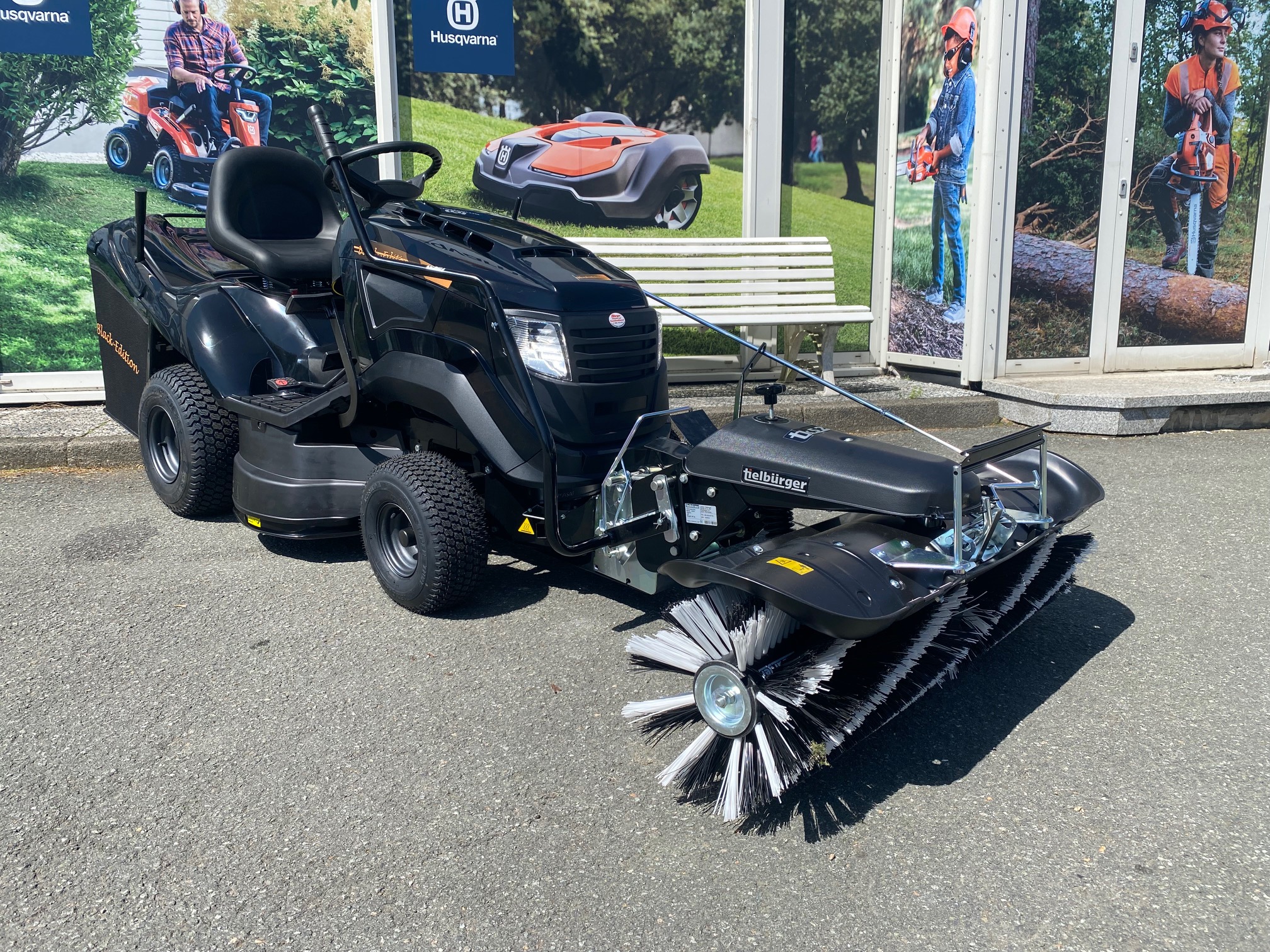 Black Edition Rasentraktor Pro 225/92 Twin H mit Kehrmaschine