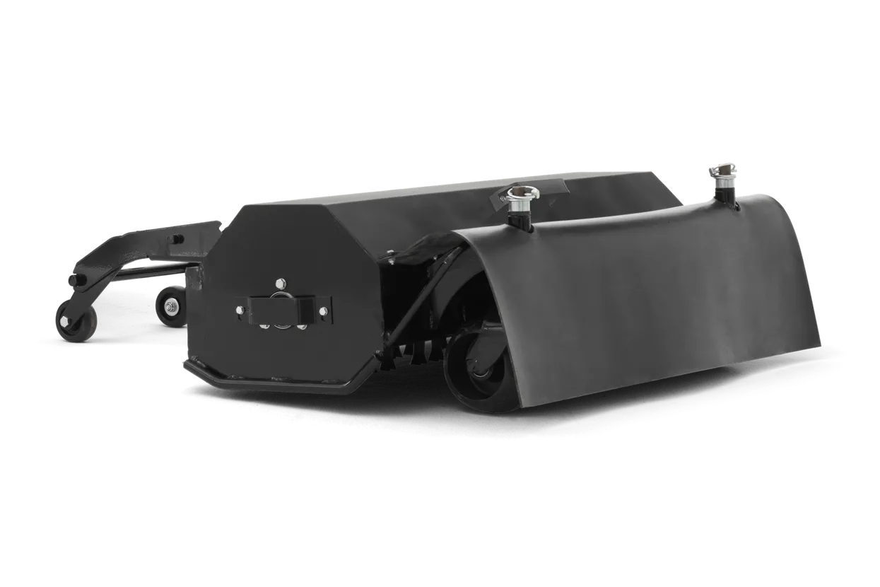 Ob das Gras wie gewohnt gemulcht oder direkt ausgeworfen werden soll, steuert der Fahrer jederzeit, auch während der Fahrt, über einen einfachen Handhebel. Holm umlegen, fertig.