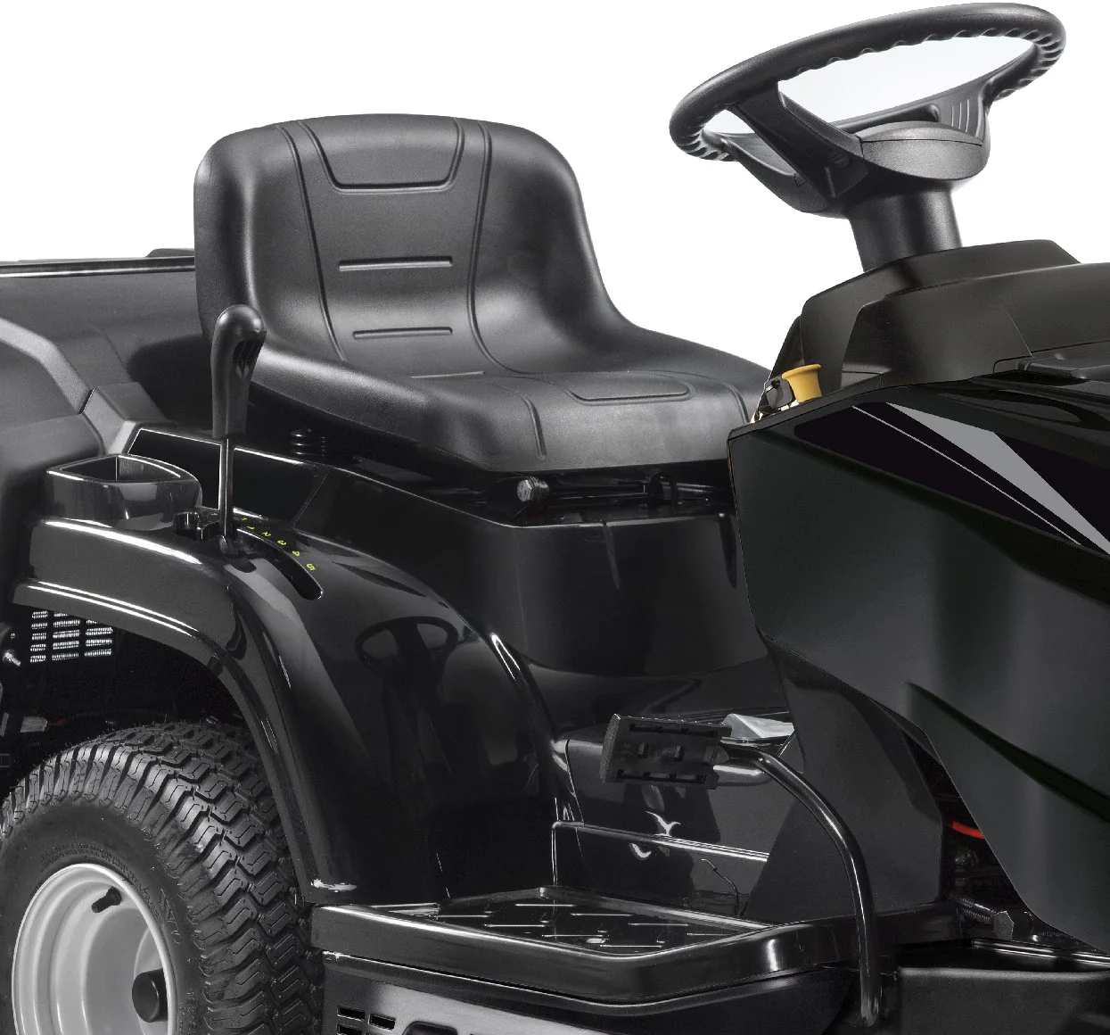 Dank einer elektromagnetischen Messerkupplung können die Messer des AT4 98 HA mühelos betätigt werden, einfach den Knopf drücken und mähen! Der hydrostatische Antrieb, der über eine Fußpedal gesteuert wird, optimiert die Kontrolle und Manövrierfähigkeit, indem die Einstellung der Fahrgeschwindigkeit in stufenlosen Schritten ermöglicht wird.
