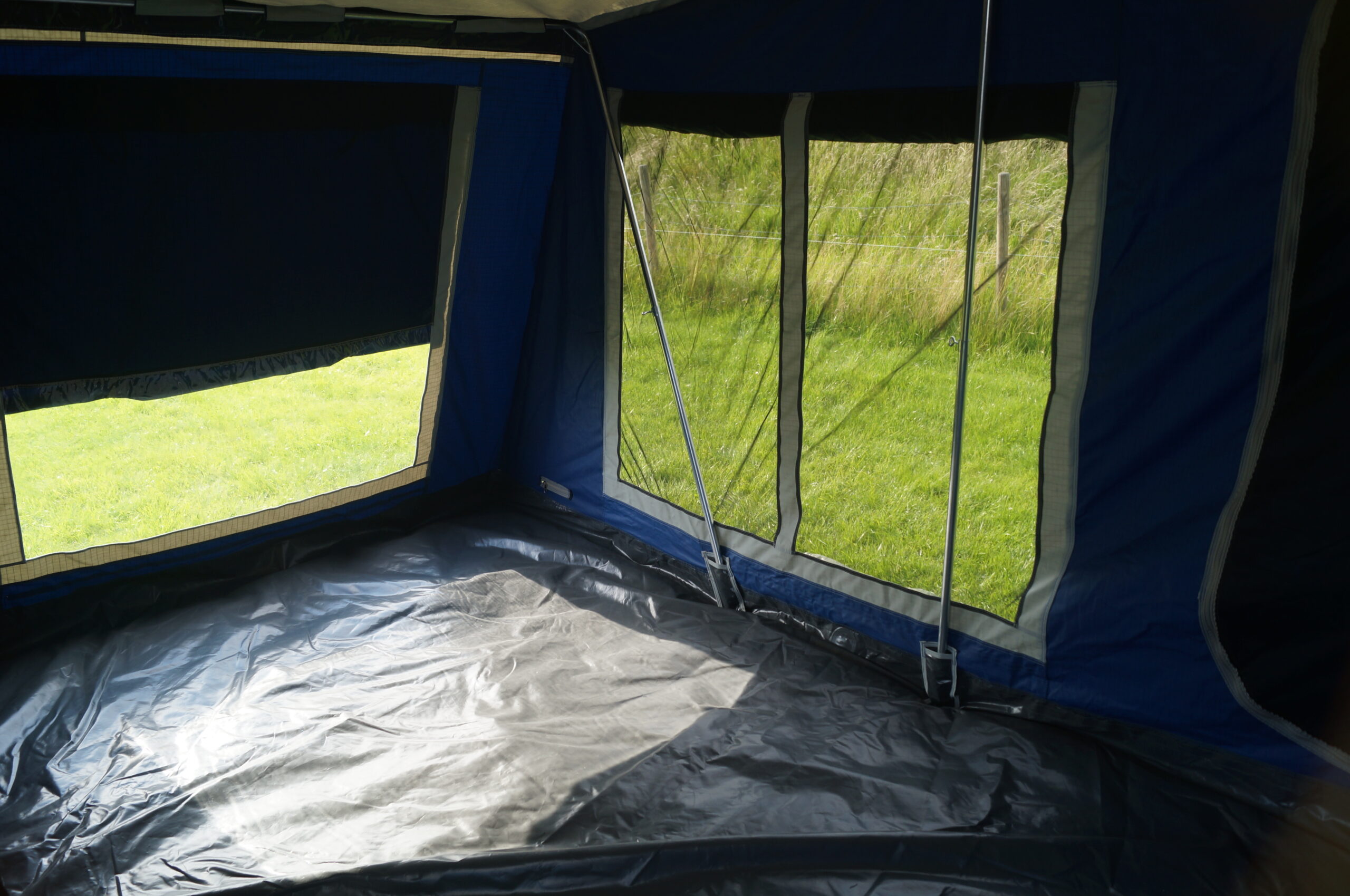 - Seitenöffnung zum Anhänger im Zeltbereich