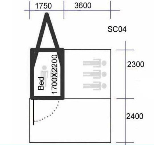 Schlafbereich: 175 x 230 cm = 4,02 qm