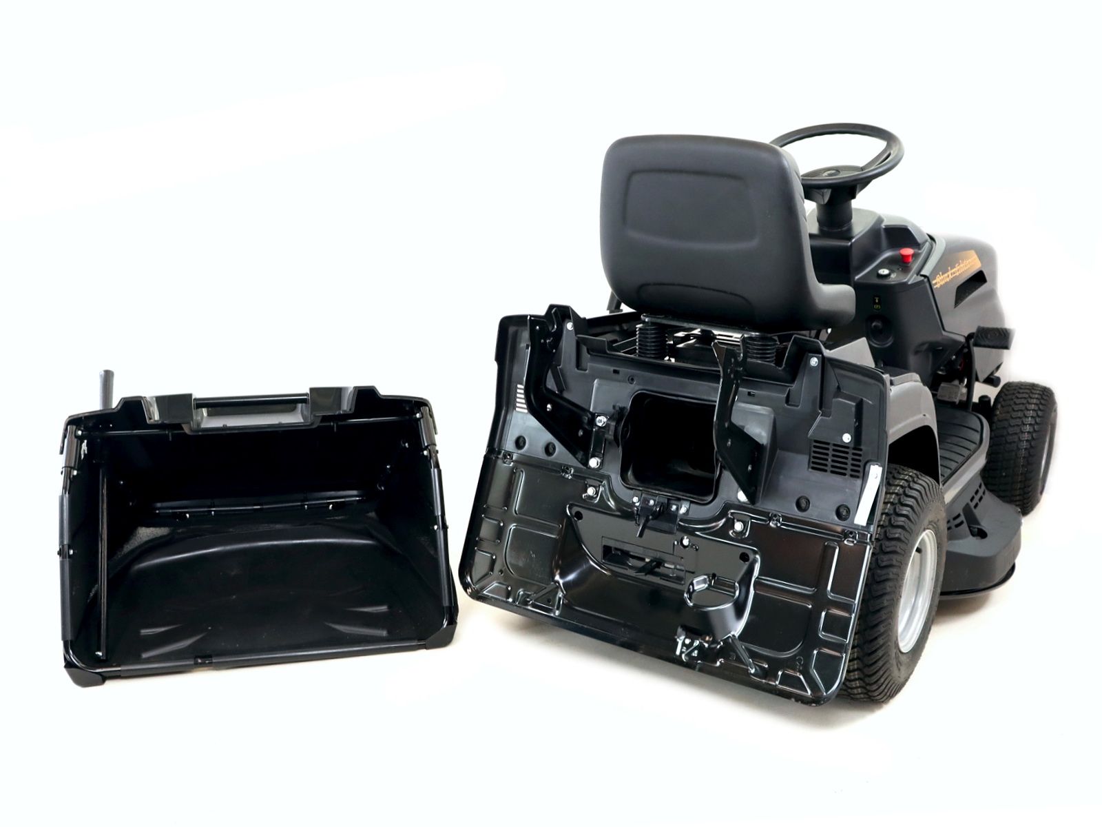 Die große, effektive Grasfangbox sorgt für ein hervorragendes Aufsammeln von Gras und Laub.