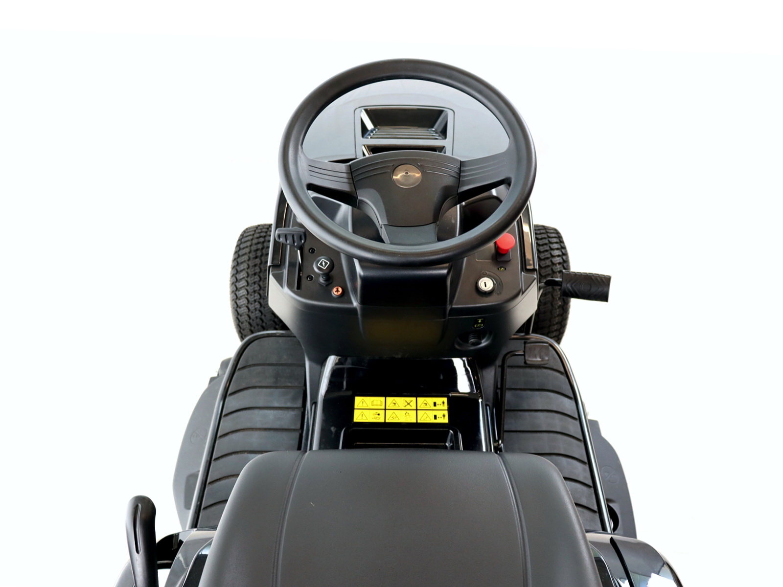 Bequeme Geschwindigkeits- und Richtungskontrolle durch pedalgesteuertes Hydrostatikgetriebe. Großes Pedal zum Vorwärts- sowie Rückwärtsfahren.