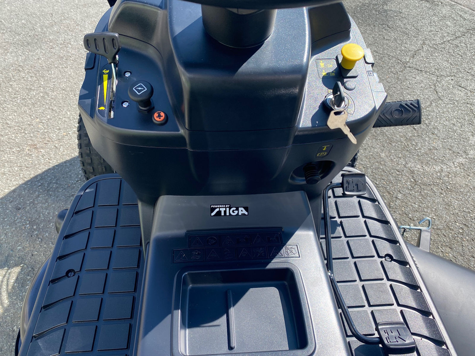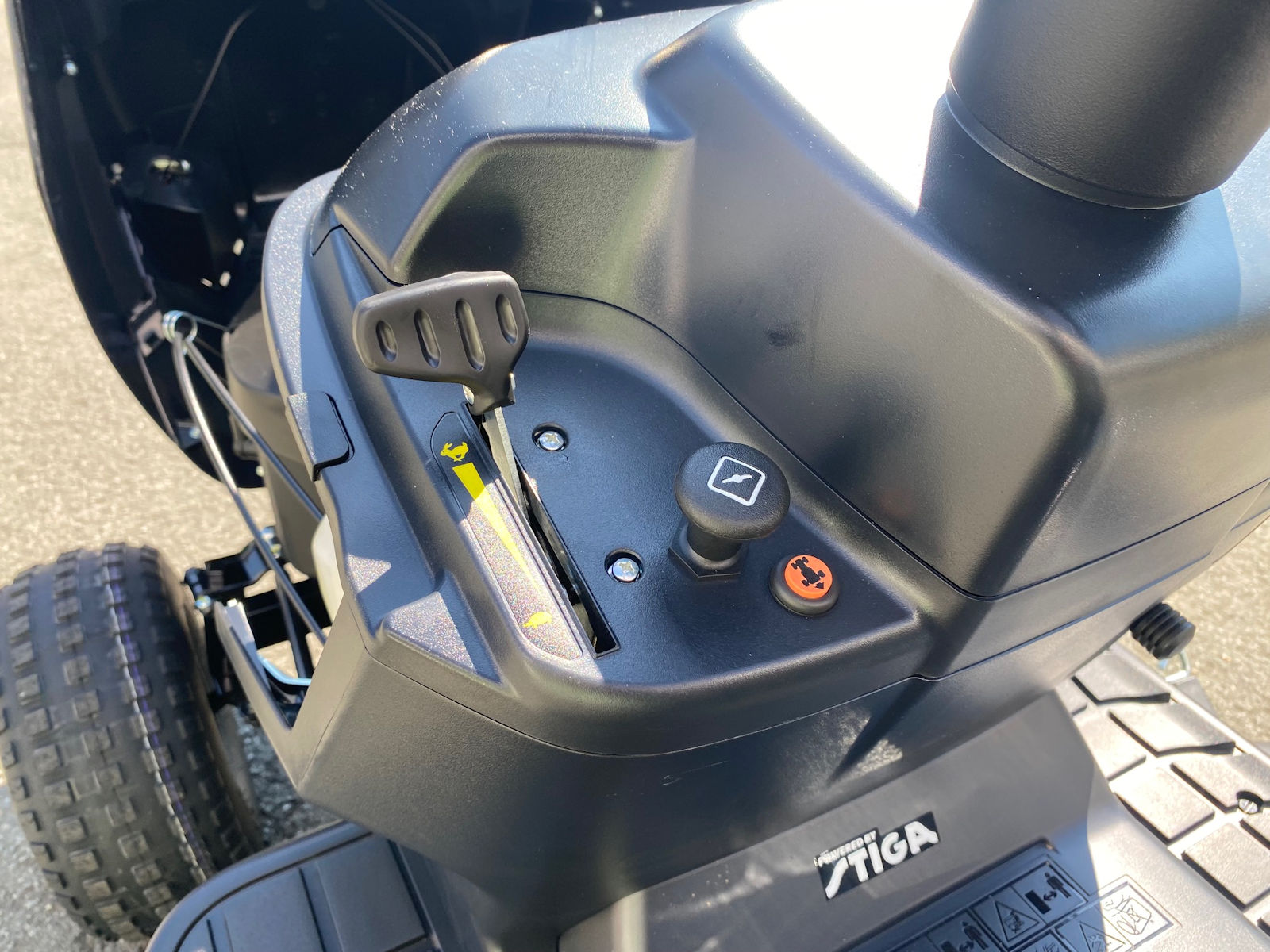 Dieses Modell ist mit einer Anhängeöse ausgestattet, so dass du mit allen für diesen STIGA-Rasentraktor erhältlichen Anbaugeräten arbeiten kannst.