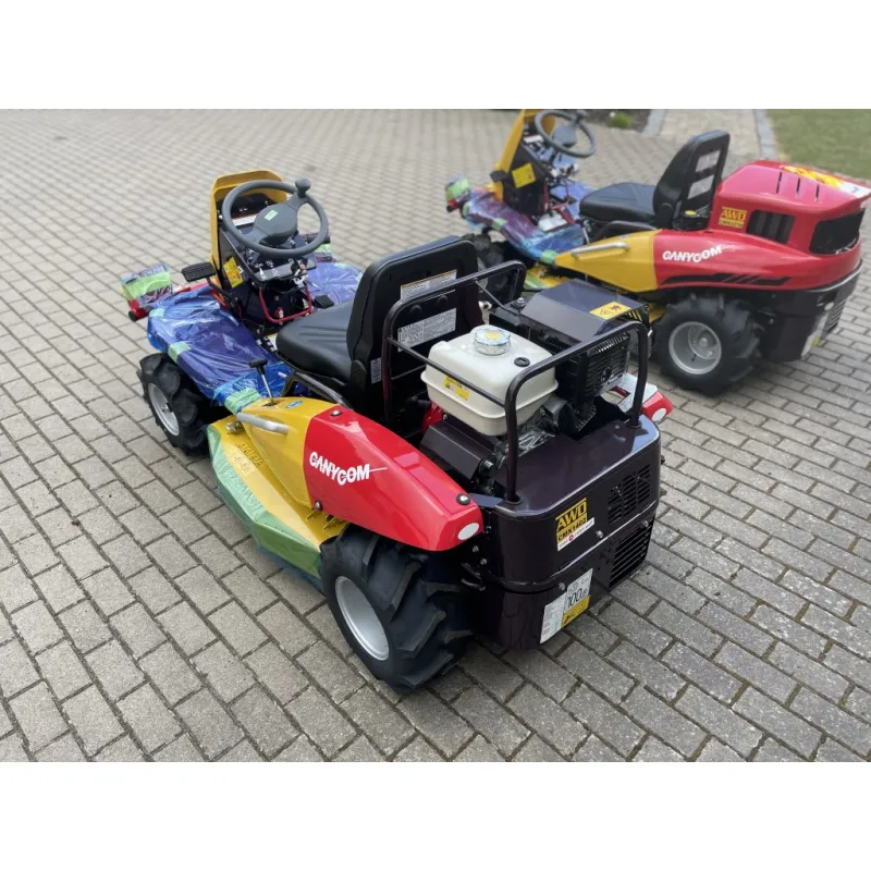 Der CANYCOM CMX 1402 ist nahezu baugleich mit dem CANYCOM CM 1401. Der einzige Unterschied: der Vierradantrieb. Mit der daraus resultierenden Hangtauglichkeit von 20°, ist der CANYCOM CMX 1402 ein semiprofessionelles Gerät. Der Schwerpunkt der Maschine ist bauartbedingt so optimal definiert, dass sie kaum kippen kann – ein echtes Alleinstellungsmerkmal.