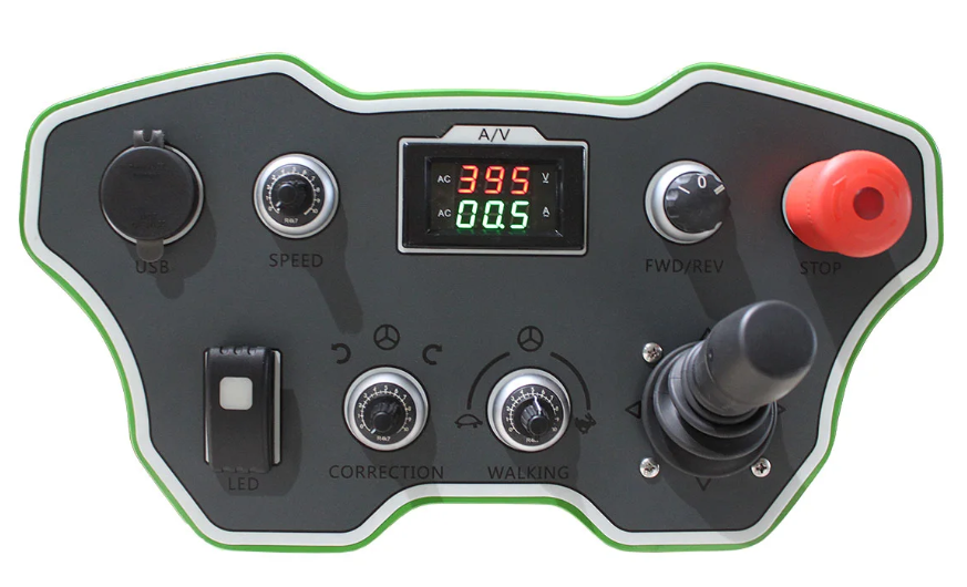 Optional: DBS-820-4H EV mit elektrischem Vorschub inklusive Fahrtrichtungskorrektur und komfortabler Joystick-Steuerung