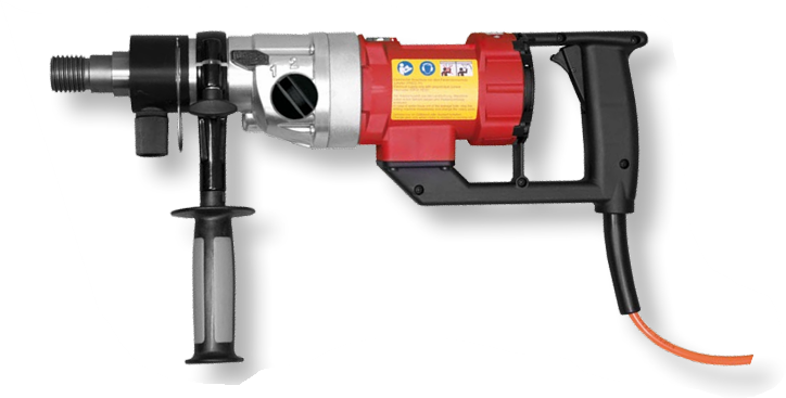 Kompakter und leistungsstarker Kernbohrmotor mit abschaltbarer Softschlag-Funktion für Trockenbohren in armiertem Beton und anderen Baustellenmaterialien mit schlagfestem Kunststoffgehäuse (nur rot erhältlich).