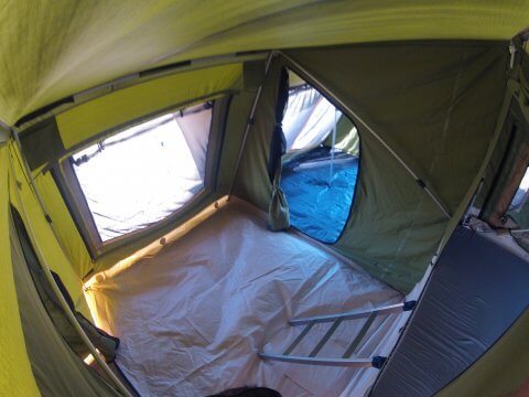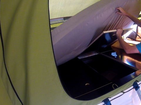 • intelligentes Zeltdesign führt dazu, daß der Boden im zusammengepackten Zustand obenauf liegt, wodurch es wesentlich einfacher wird ihn zu putzen und das Zelt sauber zu halten