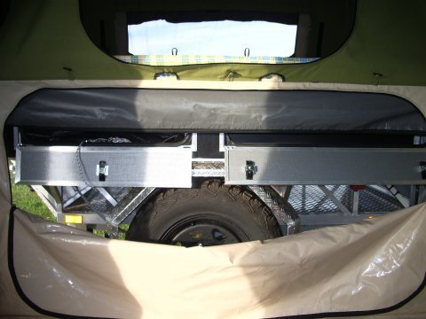 • Anhängerinhalt ist durch Ladeklappen im Schlafraum leicht erreichbar