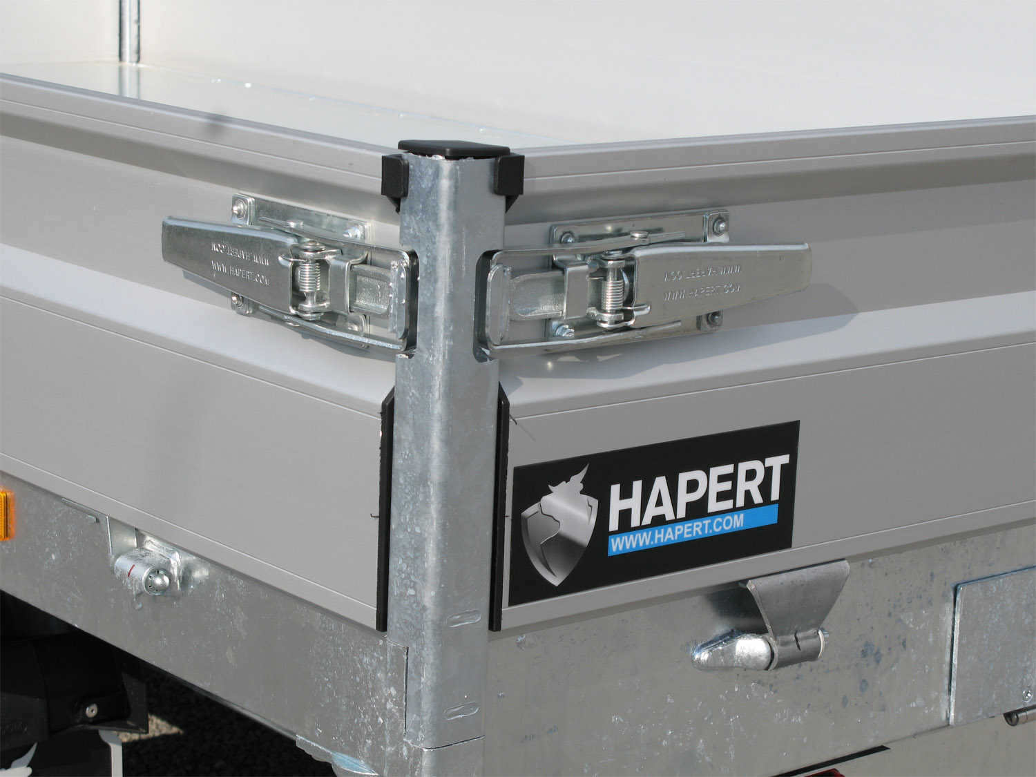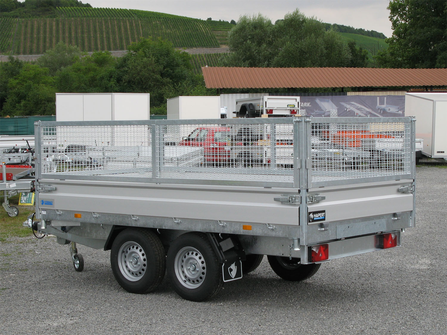 Der Hapert Cobalt HM-2 – 3500 ist ein robuster Dreiseitenkipper mit elektrischer Bedienung per Batterie und einem soliden Hydraulikzylinder. Das vollbadverzinkte, komplett geschweißte Fahrgestell sorgt für maximale Stabilität. Das Modell beinhaltet einen 600 mm hohen Gitteraufsatz und ein TÜV-geprüftes Ladungssicherungssystem. Die neuen Bordwandscharniere ermöglichen eine einfache Befestigung von Zubehör wie Ladungsnetzen. Die Aluminium-Wände sind 30 cm hoch und mit robusten eingelassenen Verschlüssen versehen. Zudem verfügt der Kipper über vier herausnehmbare Eckrungen sowie ein schweres klappbares Stützrad. Der vollverzinkte 3 mm Stahlboden garantiert Langlebigkeit, während die Standard-Bereifung 13 Zoll beträgt (optional mit 14 Zoll FW erhältlich). Gegen Aufpreis sind eine Nothandpumpe und ein Batterieladegerät verfügbar.