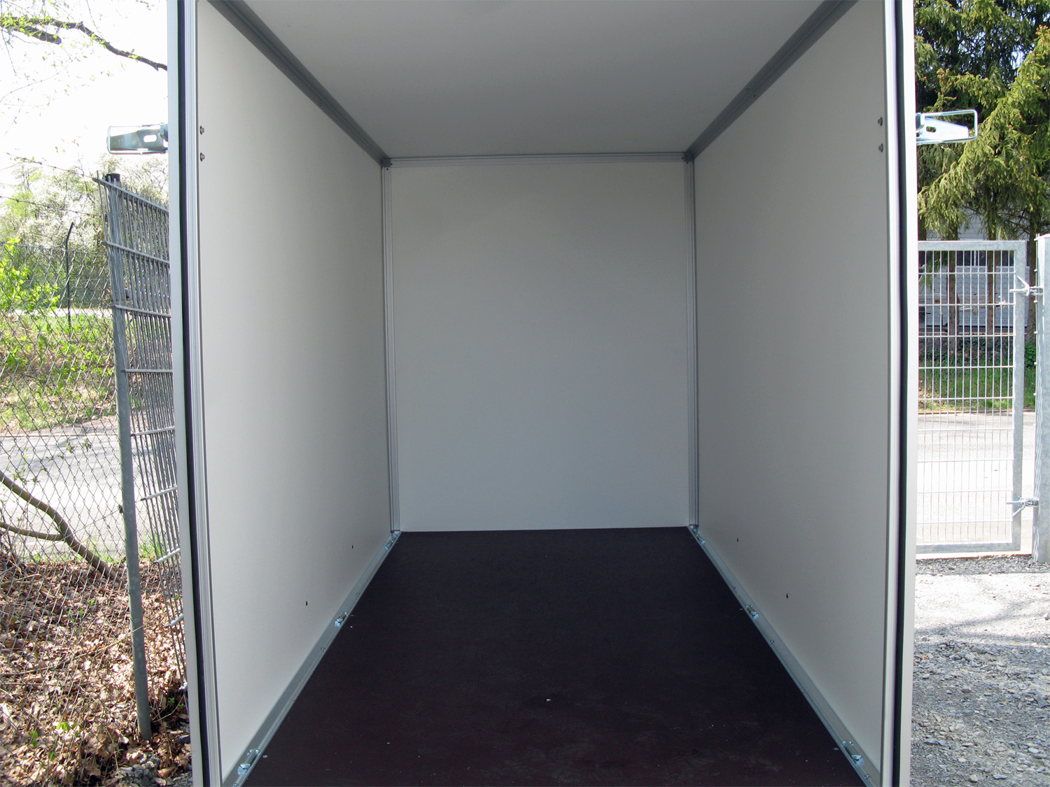Die Multiplex-Wände (15 mm, kunststoffbeschichtet) sorgen für eine langlebige Konstruktion, während der Multiplex-Boden mit rutschhemmender Beschichtung eine sichere Ladung ermöglicht.