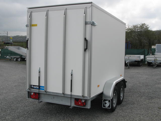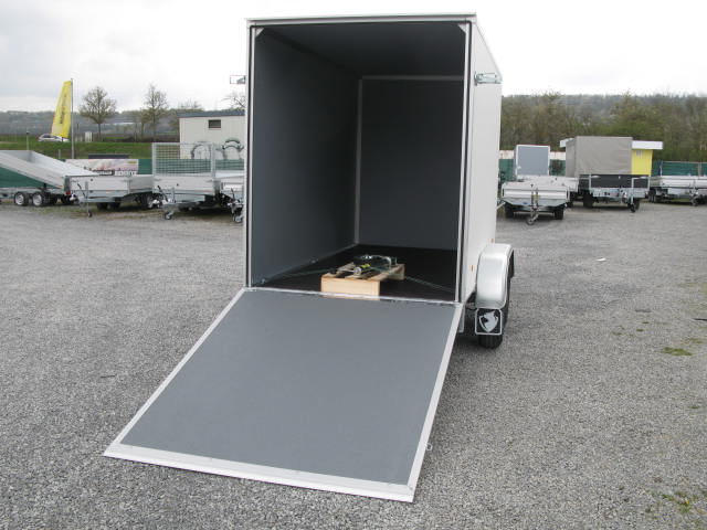 Der Hapert Sapphire L-2 – 2700 ist ein stabiler Tieflader-Kofferanhänger, ausgestattet mit einer rutschhemmenden Auffahrklappe mit Gasdruckfedern für komfortables Be- und Entladen.