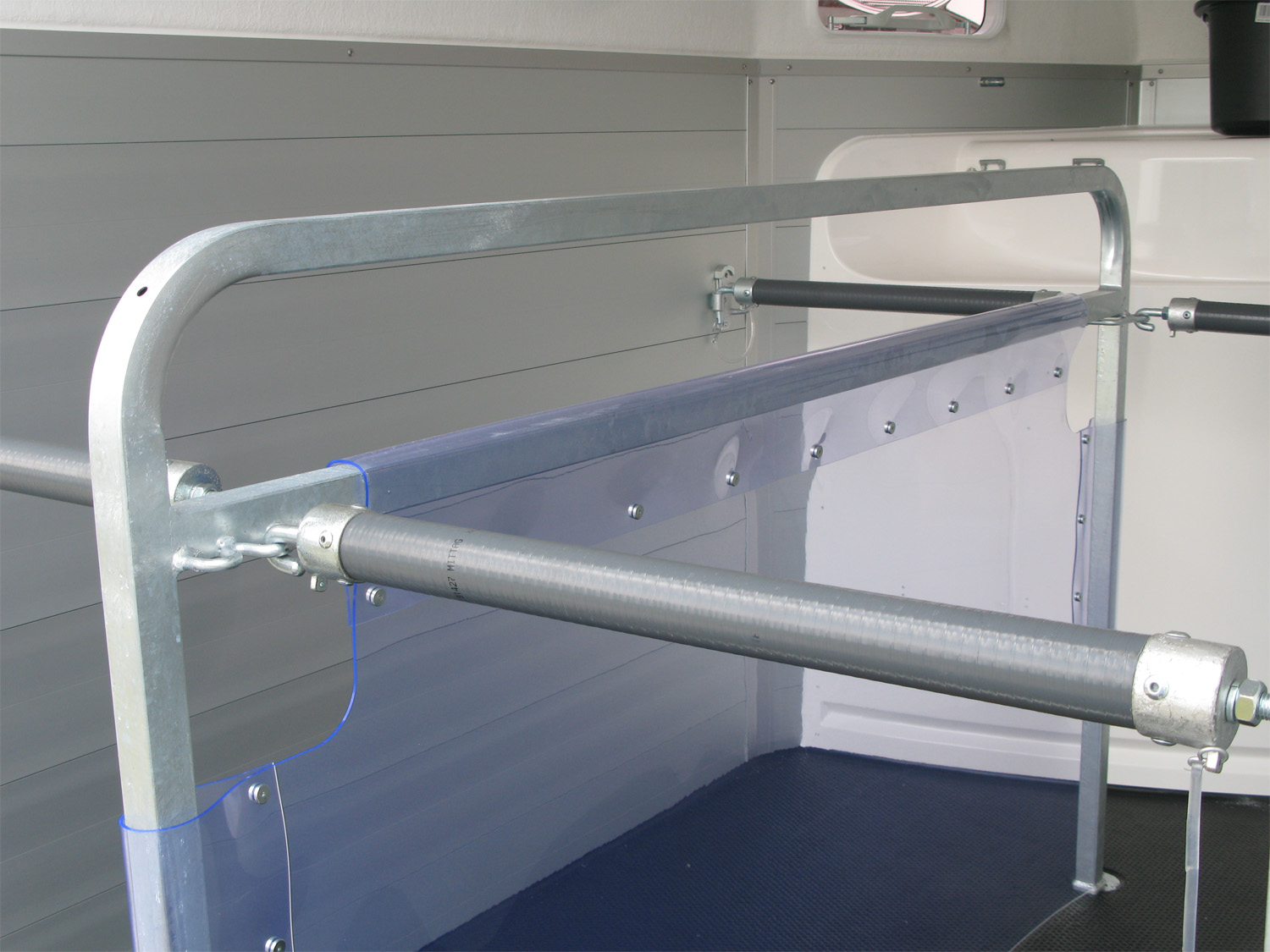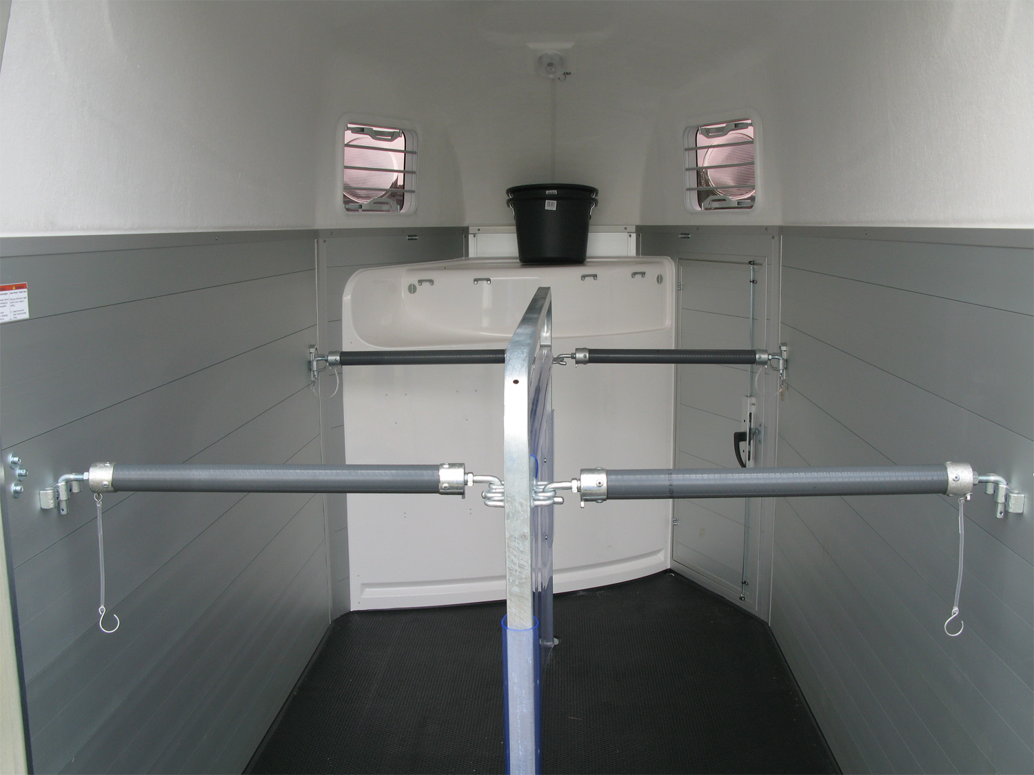 Der Humbaur Equitos Alu 2000 bietet eine erstklassige Transportlösung für Pferde, kombiniert mit einer abschließbaren Sattelkammer, die mit einem Sattelhalter, Trensenhalter, Spiegel und Netz ausgestattet ist. Dank des EquiDrive® Fahrwerks mit Radstoßdämpfern und der Bereifung für 100 km/h (nur in Deutschland) bietet der Anhänger hohe Fahrstabilität. Der Alu-BiComp-Boden (21 mm) mit eingeklebtem Gummiboden (8 mm) garantiert Langlebigkeit und einfache Pflege. Die robuste Bauweise aus doppelwandigen, eloxierten Aluminiumprofilen sowie das massive, umlaufende und verzinkte Rahmenprofil sorgen für eine sichere und stabile Konstruktion. Mit der EquiLock® Trennwand, den geteilten Brust- und Heckstangen mit Panikentriegelung, den getönten Ausstellfenstern in der Polyhaube und dem exklusiven Windschott für zugfreie Innenraumbelüftung ist der Komfort für Pferd und Besitzer optimal gewährleistet. Zusätzlich verfügt der Anhänger über eine Polyhaube in Black-Metallic, eine große Einstiegstüre mit 3-Punkt-Verriegelung, Innenbeleuchtung sowie eine elegante verzinkte Heckabstützung mit integrierter Beleuchtung.