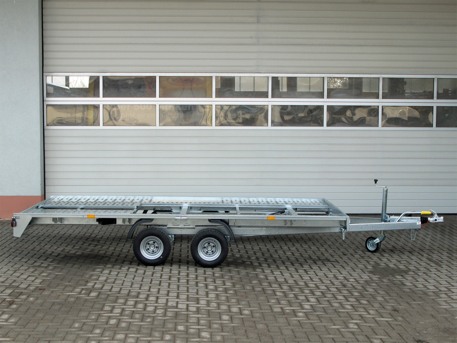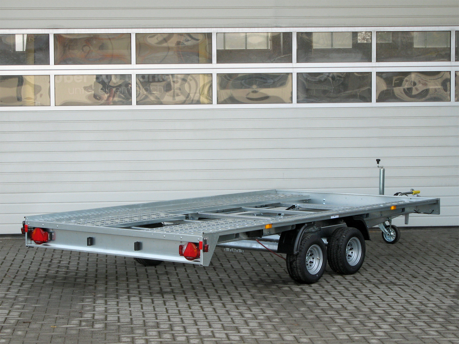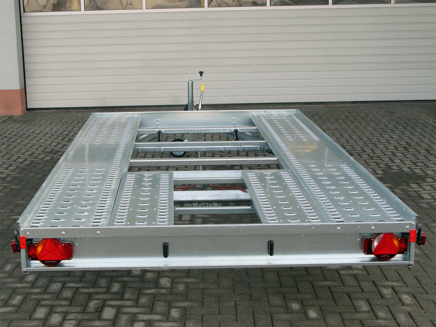 Das geschraubte, verzinkte Fahrgestell sorgt für hohe Stabilität, während die Stahl-Auffahrschienen ein müheloses Be- und Entladen ermöglichen. Die V-Zugdeichsel, feuerverzinkt im Tauchbad, bietet eine robuste Konstruktion für eine lange Lebensdauer.