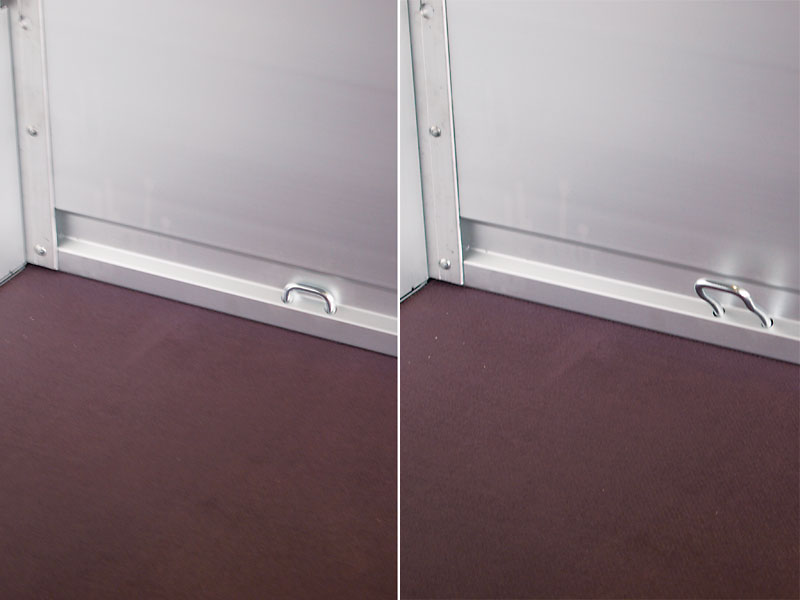 - Versenkte Zurrbügel in den Seitenbordwänden (4 Stück bis 2050 mm Kastenlänge, 6 Stück ab 2510 mm Kastenlänge)