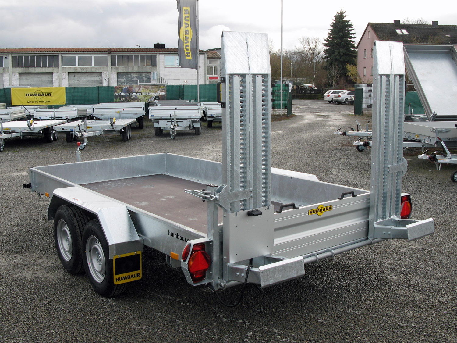 Der Humbaur HS303016 ist ein robuster Baumaschinentransporter, ideal für den täglichen gewerblichen Einsatz. Seine massive Bauweise, durchdachten Sicherheitsmerkmale und praktische Ausstattung erleichtern das Verladen und Transportieren von Baumaschinen.