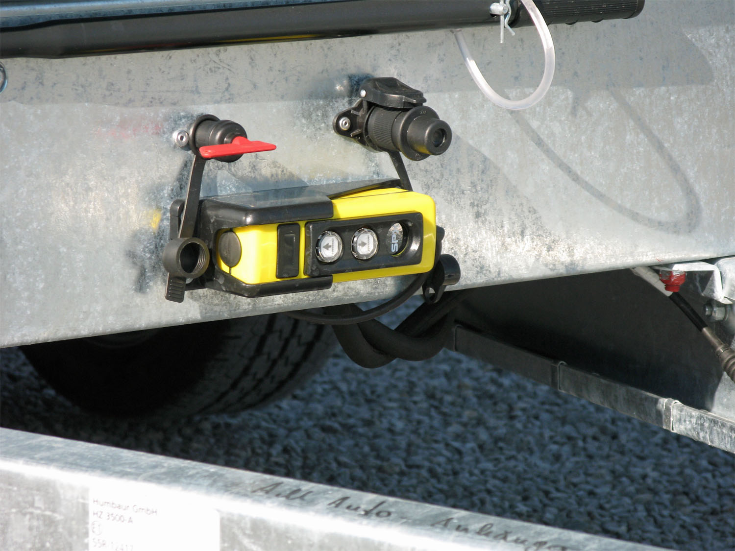 Der Humbaur HTK 3500.41 ALU Tridem ist ein robuster Dreiseitenkipper mit Aluminium-Bordwänden und drei Achsen für eine optimale Stabilität. Ausgestattet mit einer Bereifung von 195/50 R13 C, bietet er eine hohe Belastbarkeit und Fahrkomfort. Besondere Merkmale umfassen den 600 mm hohen Gitteraufsatz sowie das tauchbadverzinkte Fahrwerk, den Rahmen und die Kippbrücke aus einem Stück Stahl für maximale Langlebigkeit. Er verfügt über acht im Brückenboden montierte Anbinderinge (je 800 kg Zugkraft), eine hochwertige Hydraulikeinheit und einen hartverchromten 4-stufigen Qualitäts-Kippzylinder. Die Heckklappe ist pendelbar, und der Bohlenschacht ist vormontiert und vorbereitet für Alubohlen. Mit Elektro- und Handpumpe ausgestattet, bietet das Modell einen Kippwinkel von ca. 45° nach hinten und seitlich.