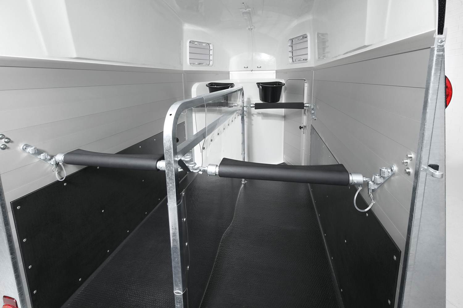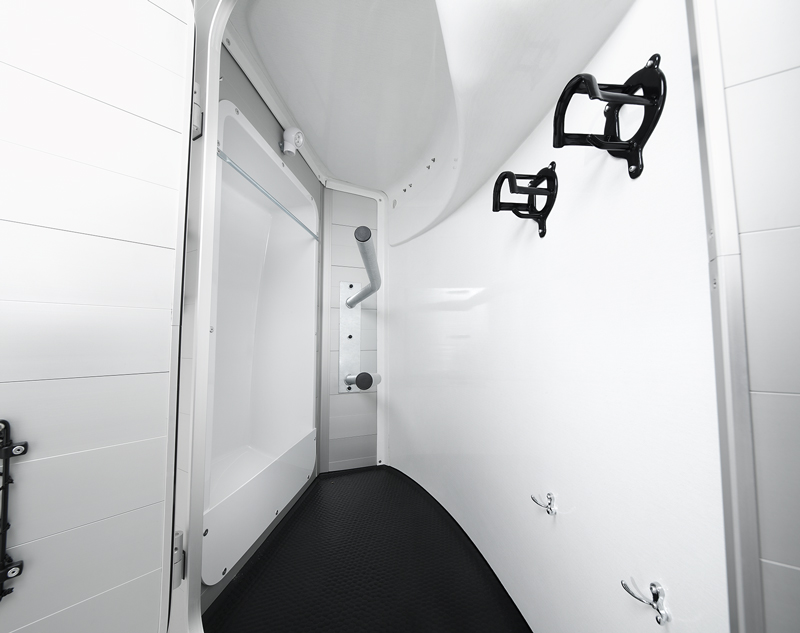 Der Humbaur Xanthos Aero 2700 S kombiniert Eleganz und Funktionalität mit seinem innovativen AERO-Bug, der gleich drei Vorteile bietet: reduzierte Windgeräusche, verminderter Kraftstoffverbrauch, und erweiterter Stauraum in der Sattelkammer um ca. 20 %. Das EquiDrive® PLUS S Schraubenfeder-Fahrwerk sorgt für maximale Fahrstabilität, während die doppelwandigen, eloxierten Aluminiumprofile in Kombination mit einem umlaufenden, feuerverzinkten Rahmenprofil eine robuste Konstruktion gewährleisten. Die großzügige abschließbare Sattelkammer ist mit Sattelhalter, Trensenhalter, Spiegel, Netz, Innenbeleuchtung, Schaufel und Besen ausgestattet. Die geteilten, gepolsterten und höhenverstellbaren Brust- und Heckstangen mit Panikentriegelung, das exklusive Windschott für zugfreie Innenraumbelüftung, sowie die EquiLock® verriegelbare Trennwand sorgen für einen komfortablen und sicheren Transport. Zusätzliche Features wie getönte, 5-fach verstellbare Ausstellfenster, Einstiegs- und Sattelkammertüre mit 3-Punkt-Verriegelung, eine Polyhaube und Bug in Silver Metallic, sowie eine Automatik-Stützrad mit Rangiergriff runden die Ausstattung ab.