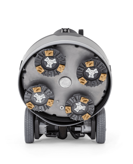 Die PG 8 XR ist eine leistungsstarke, fernsteuerbare Planetenbodenschleifmaschine mit vier Schleifscheiben. Bei der Vier-Scheiben-Technologie drehen sich zwei Schleifscheibenpaare gegeneinander, wodurch die PG 8 XR gut ausbalanciert ist und hocheffizient arbeitet. Die Maschine ist eine ausgezeichnete Wahl für alle Anwendungen, von der Vorbereitung bis zum Schleifen und Polieren von Beton- und Steinböden. Das Sprühnebel-System „Mist Cooler“ kühlt die Diamantwerkzeuge, wodurch die Abtragsrate erheblich erhöht und das Risiko der Verglasung verringert wird (im Vergleich zur Verwendung ohne Mist Cooler System). Bei Bedarf können die integrierten einstellbaren Gewichte verwendet werden, um den Schleifdruck und die Produktivität zu erhöhen.