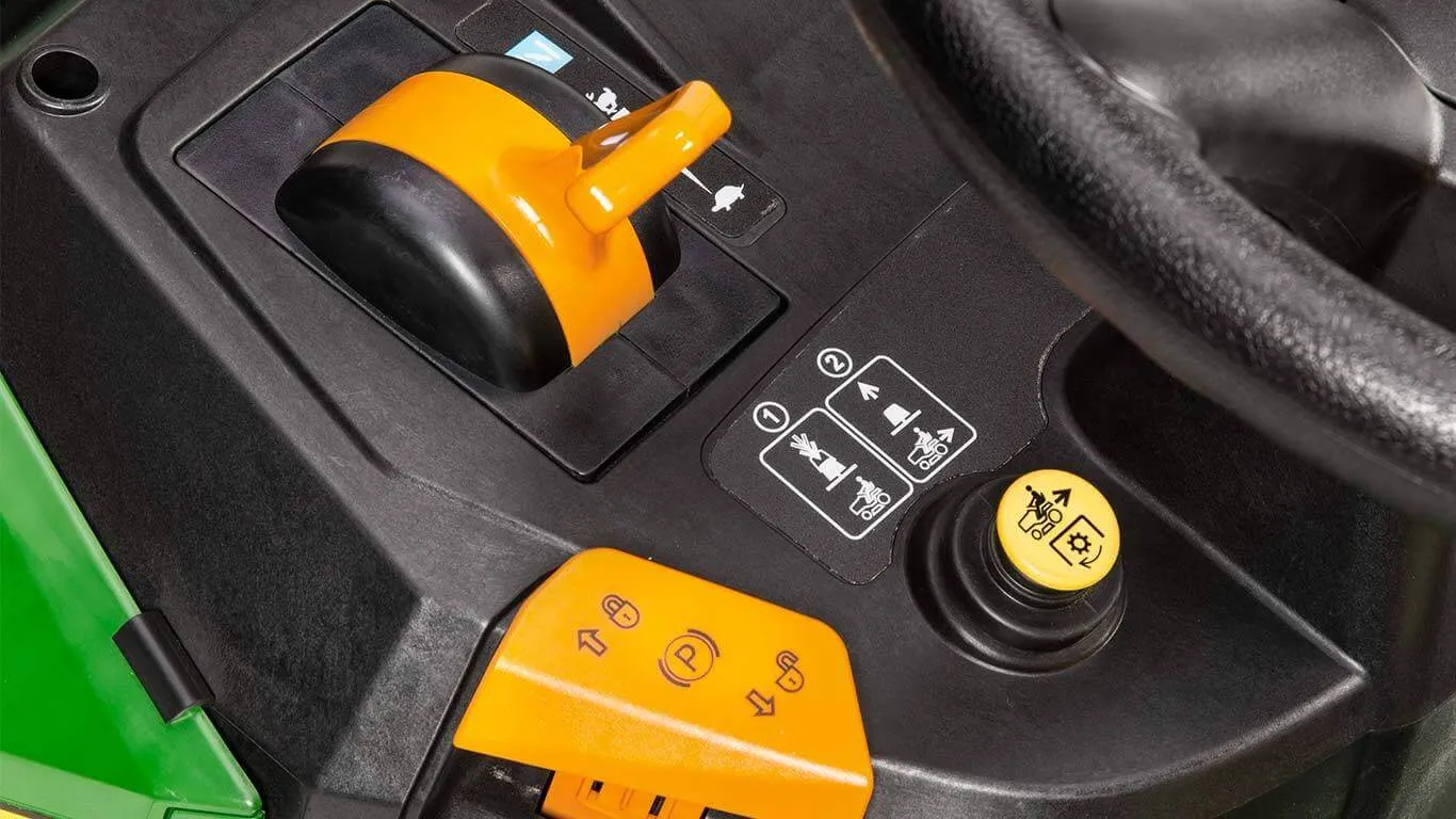 Unser Rasentraktor X117R mit Sammel-/Auswurfsystem am Heck ist mit einem Einzylindermotor, einem Hydrostatikgetriebe mit bedienerfreundlicher Fußpedalsteuerung und einem 92-cm-Mähwerk ausgestattet. Der 300-l-Grasfangbehälter lässt sich schnell abnehmen und durch einen optional erhältlichen Deflektor oder Mulcheinsatz austauschen, wenn das Material nicht eingesammelt werden soll. Außerdem ist der X117R standardmäßig mit einem Heckkraftheber ausgestattet, mit dem verschiedene Geräte für praktisch alle Aufgaben in der Rasenpflege gezogen werden können.