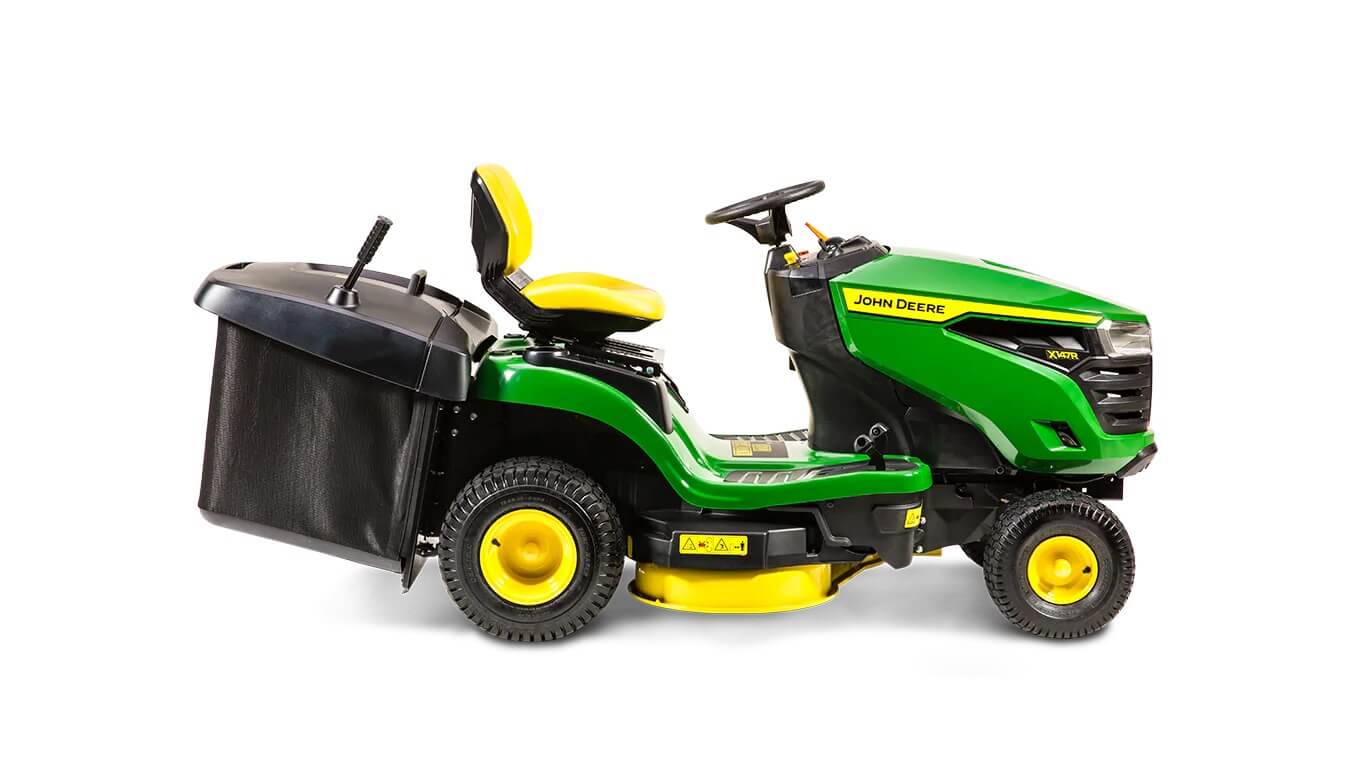 Der X147R steht in jedem Aspekt seines Designs, beispielsweise mit seinem durchgehenden, geschweißten Stahlrahmen und seiner Vorderachse aus Gusseisen, für Verlässlichkeit, Langlebigkeit und Stärke. Durch seine ergonomisch gestaltete Fahrerplattform, seinen qualitativ hochwertigen Fahrscheinwerfern und der Vielzahl an Fahrgeschwindigkeiten wird das Rasenmähen zum Vergnügen. Der Rasentraktor X147R: automatische hintere Auffangvorrichtung für ein perfektes Schnittbild.