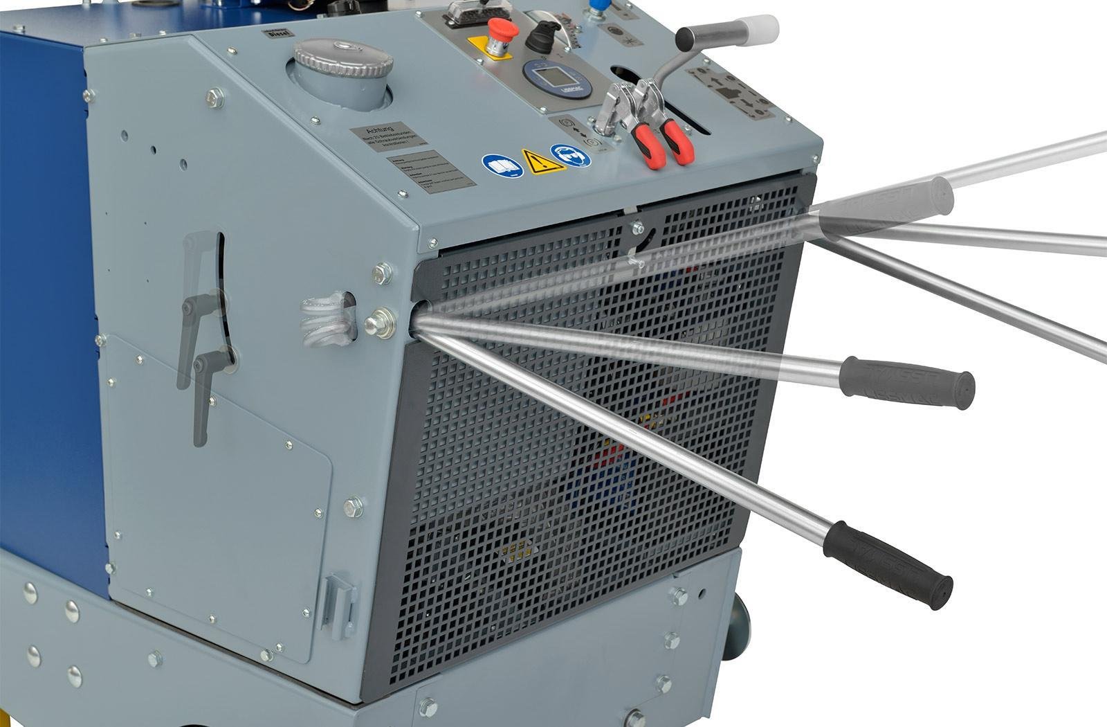 - Die höhenverstellbaren Handgriffe erlauben eine ergonomische Bedienung des Gerätes
