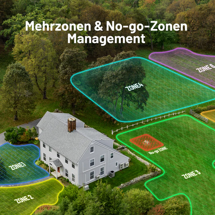 - In-App-Mehrzonenverwaltung bis zu 10 Mähzonen