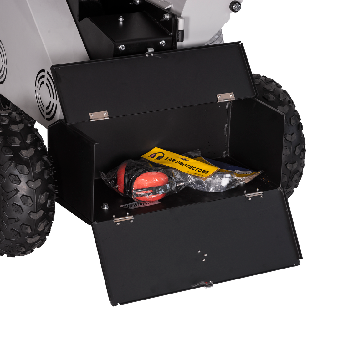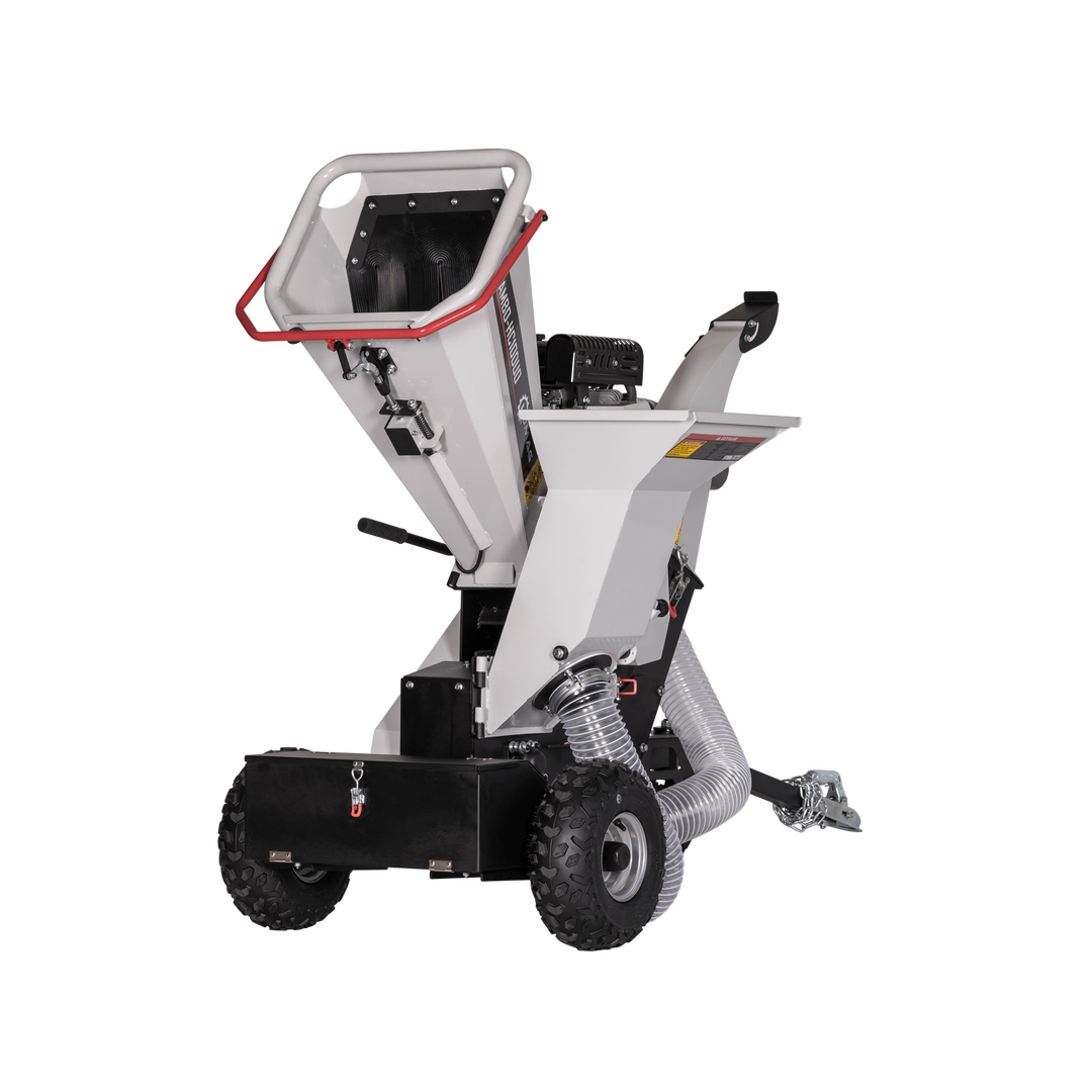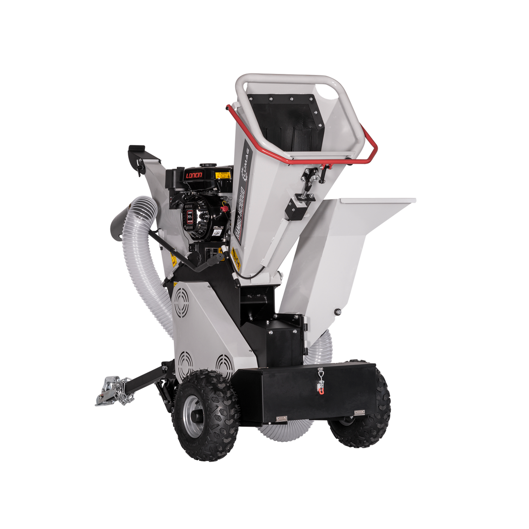 Der Lumag Benzin-Kombi-Häcksler RAMBO-HC10DUO ist eine Neuentwicklung mit 2 Trichtern und Saugschlauch. So ist es nun auch möglich mittels Saugschlach bzw. über den Trichter für Laub, Laub und andere Gartenabfälle zu verarbeiten. Über den Trichter für Astwerk zerkleinern Sie mühelos Astwerk bis zu einer Stärke von Ø 100 mm. Die großen Einfülltrichter ermöglichen eine komfortable Bedienung und das integrierte Fahrwerk mit Stollen-Luftbereifung sowie abnehmbarer Deichsel sorgt für schnelles und einfaches Umsetzen, auch in unwegsamen Gelände. Die verstärkte, professionelle Duplex-Messertrommel mit erhöhter Einzugskraft verarbeitet auch widerspenstiges Material problemlos. Der verstellbare Auswurfklappe ermöglichen eine individuelle Einstellung des Auswurfs. Der Einfüll- und der Auswurftrichter können zum Reinigen der Messertrommel einfach zur Seite geklappt werden. Der RAMBO-HC10DUO ein zuverlässiger und leistungsstarker Helfer für den professionellen gewerblichen und privaten Einsatz.