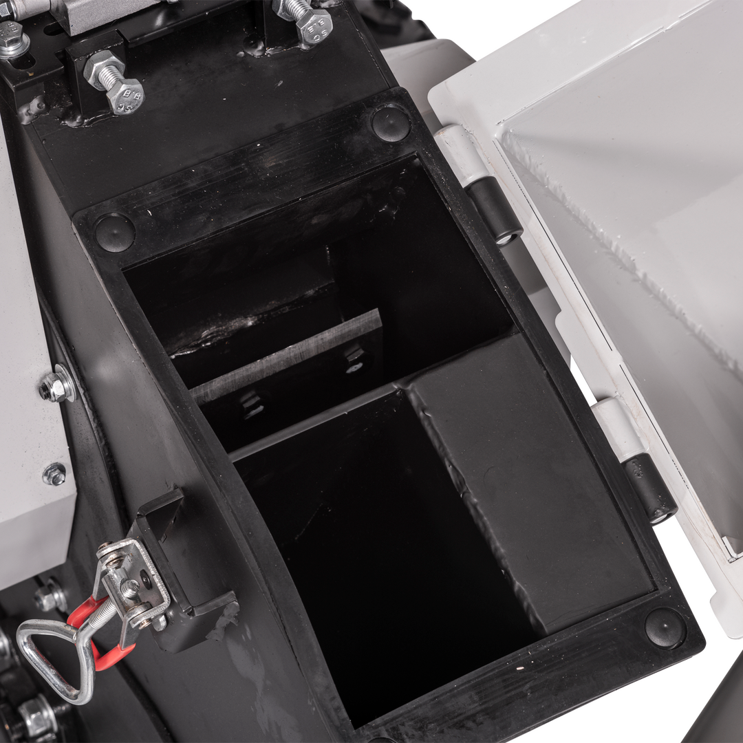 • Durch die verstärkte, professionelle Duplex-Messertrommel steigt die Einzugskraft erheblich, dadurch verarbeitet der RAMBO-HC10DUO widerspenstigeres Material