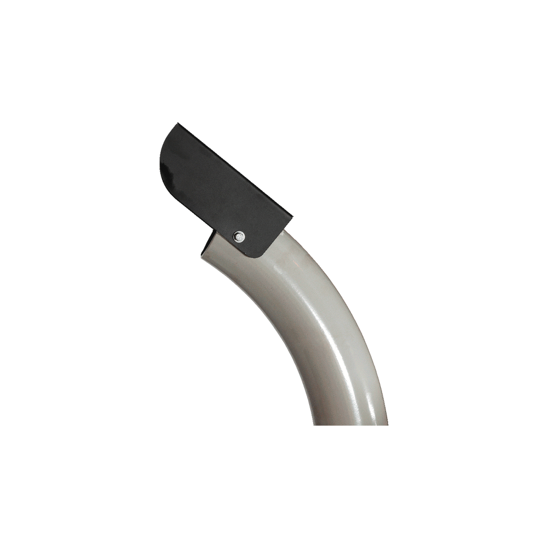 - Die angebrachten 4 Flügel, auf der Rückseite des Scheibenrades, werfen das Schnittgut über den 360° drehbaren und 80 cm hohen Auswurfschacht aus
