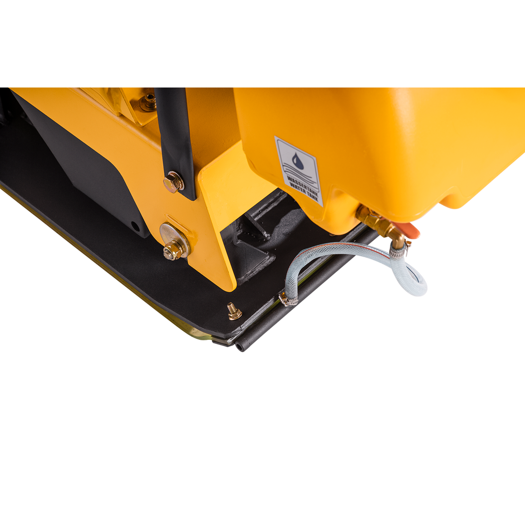 - Die Wasserberieselung ist unentbehrlich beim Verdichten von sehr staubigen Untergründen, sowie bei allen Asphalt- und Teerarbeiten! Durch ein Düsenrohr wird das Wasser vor, bzw. unter die Platte verteilt. Die Wassermenge ist regulierbar und der Tank abnehmbar.