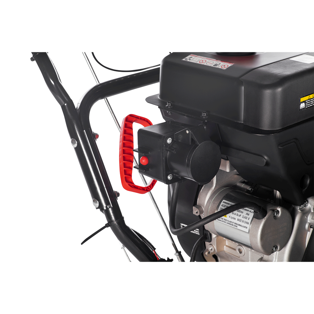 Die Schneefräse SFK80 von Lumag ist der ideale Begleiter für den Einsatz um Haus und Hof sowie zum Räumen von Parkplätzen und Stellflächen. Mit der Einhandbedienung, der Differentialsperre und Lenkunterstützung sowie den beheizten Handgriffen wird das Arbeiten besonders komfortabel. Der Elektrostart erleichtert das Anlassen und das Raupenlaufwerk sorgt für optimale Traktion. Die robuste Einzugsschnecke schafft eine Wurfweite bis zu 15 Meter und der Auswurf ist 180° stufenlos drehbar über Handkurbel einstellbar. Die Höhenverstellung erfolgt über Gleitkufen und der LED-Arbeitsscheinwerfer sorgt für gute Sichtverhältnisse.