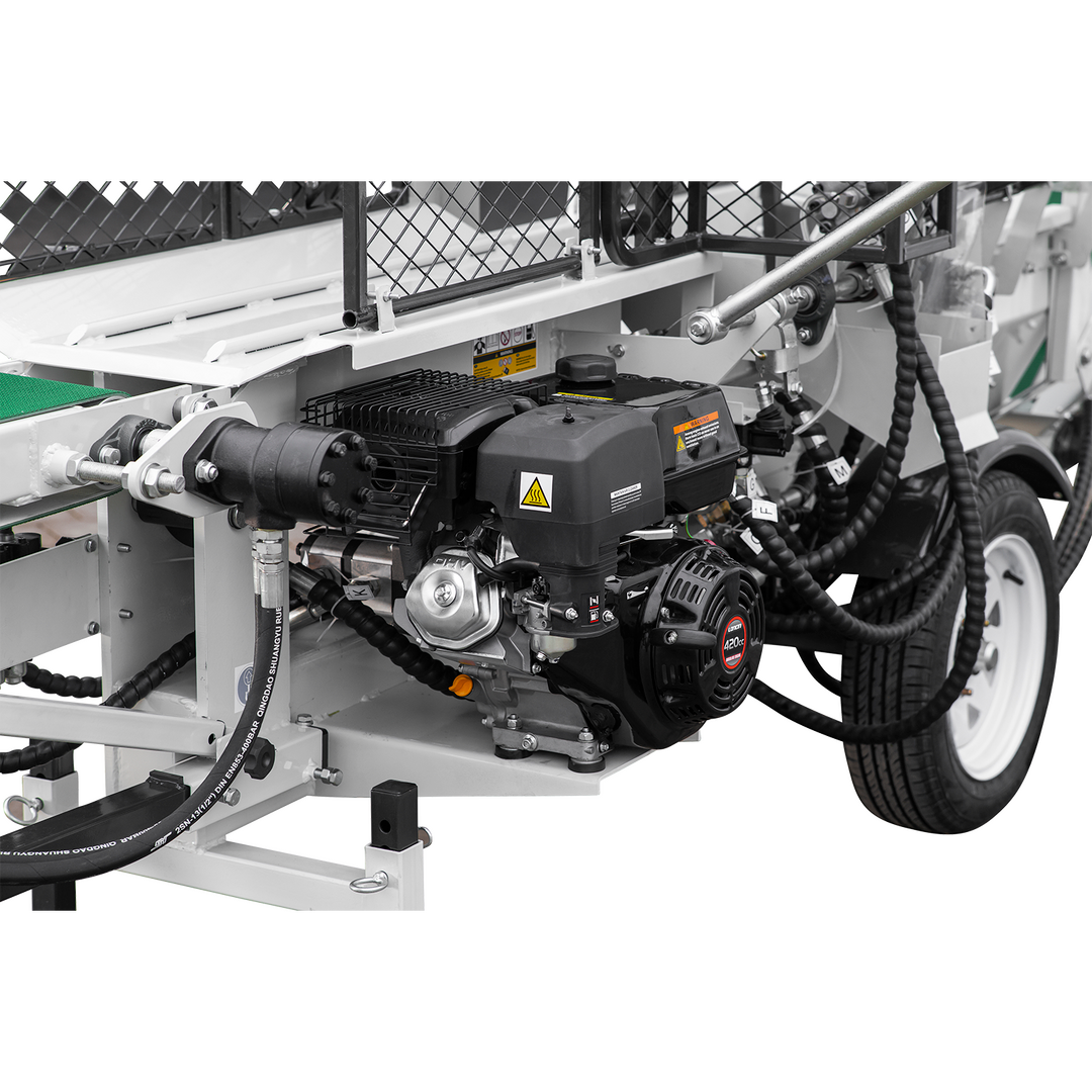 Der Benzin-Sägespaltautomat SSA500G von Lumag ist der ideale Helfer für effizientes Arbeiten beim Zerkleinern von Stammhölzern. Mit einem leistungsstarken 9,2 kW Benzinmotor ist er auch für größere Stämme mit einem Durchmesser von bis zu 50 cm geeignet. Der automatische Abtransport des Materials erfolgt mittels Gurtförderer und die Bedienung ist einfach und leicht. Die Maschine kann sowohl zum Sägen als auch zum Spalten von Holz in einem Durchgang verwendet werden. Das mitgelieferte 2+1-Steuerventil-Set und die PARKER Pumpe mit Hydraulikmotor machen den SSA500G zu einem zuverlässigen und leistungsstarken Werkzeug für professionelle Anwender.