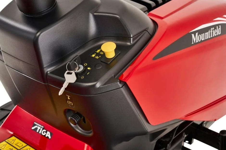 Der Mountfield MTF 98M SD ist ein spezieller Rasentraktor mit Seitenauswurf. Angetrieben von einem Stiga ST350 352ccm Einzylindermotor und ausgestattet mit einem manuellen Getriebe mit 5 Vorwärts- und 1 Rückwärtsgang. Da dieser Aufsitzmäher ohne sperrigen Grasfangkorb auskommt, ist er besonders wendig.