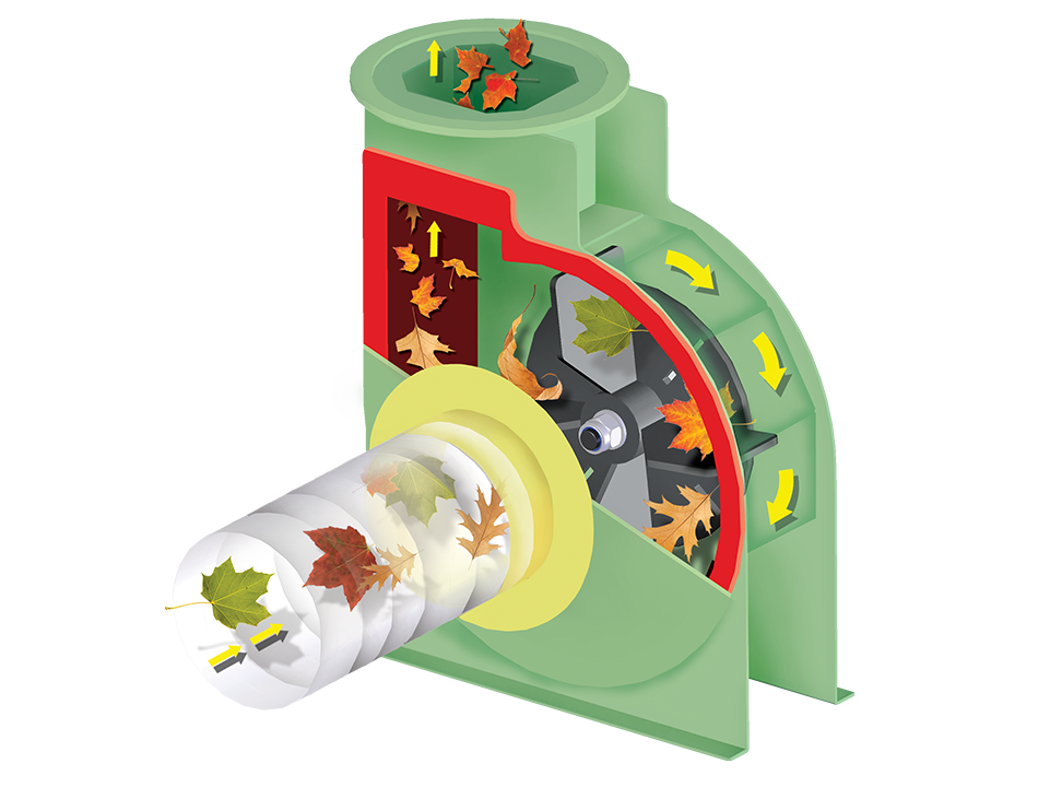 Geeignet zum Aufsaugen von Laub, Grasschnitt und leichten Abfällen.