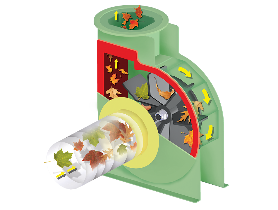 Geeignet zum Aufsaugen von Laub, Grasschnitt und leichten Abfällen.