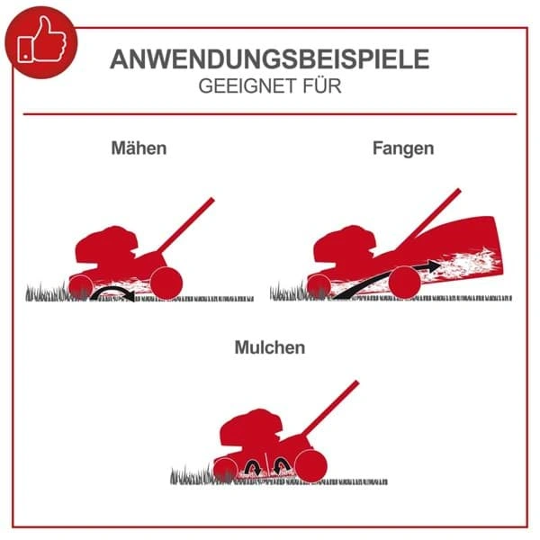 - Integrierter Seiten-, Heckauswurf sowie Mulchfunktion für professionelles Ergebnis