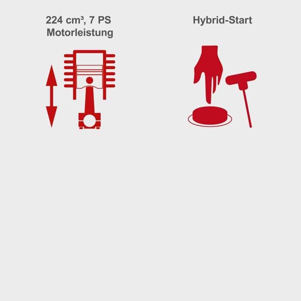 - Leistungsstarker 224 cm³ 4-Takt-Benzinmotor mit 7 PS / 5,15 kW