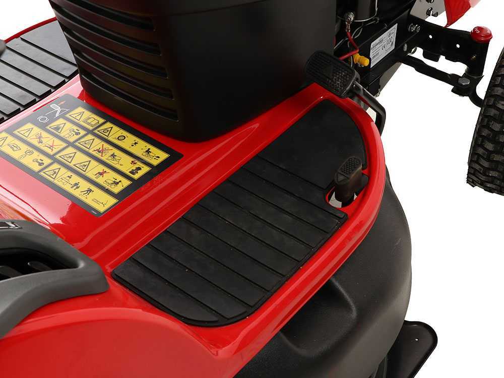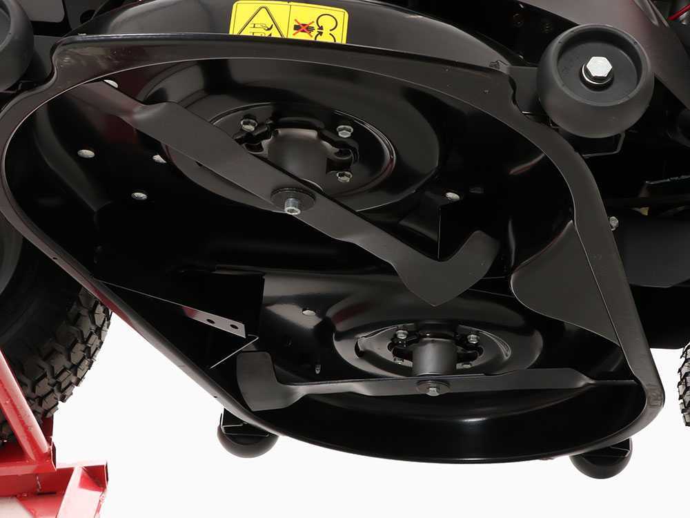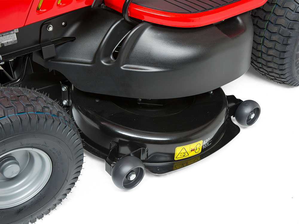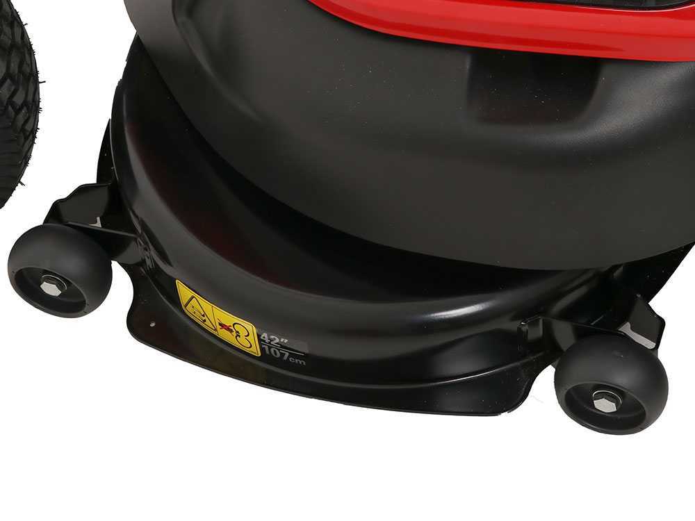 Das gestanzte Stahlmähwerkgehäuse ist am Rahmen aufgehängt und bietet eine Schnittbreite von 42 Zoll/107 cm. Dieser leistungsstarke Aufsitzmäher ist mit einer Anzeigetafel einschließlich Betriebsstundenzähler, Kraftstoffanzeige, Geschwindigkeitsregler, RMO-Schalter und Wartungsanzeige ausgestattet, so bietet er einfache Bedienbarkeit und allen Komfort, den Sie sich wünschen. Nach dem Mähen können Sie das Mähwerkgehäuse ganz leicht durch Anschließen Ihres Gartenschlauchs an den Waschanschluss wieder sauber machen.