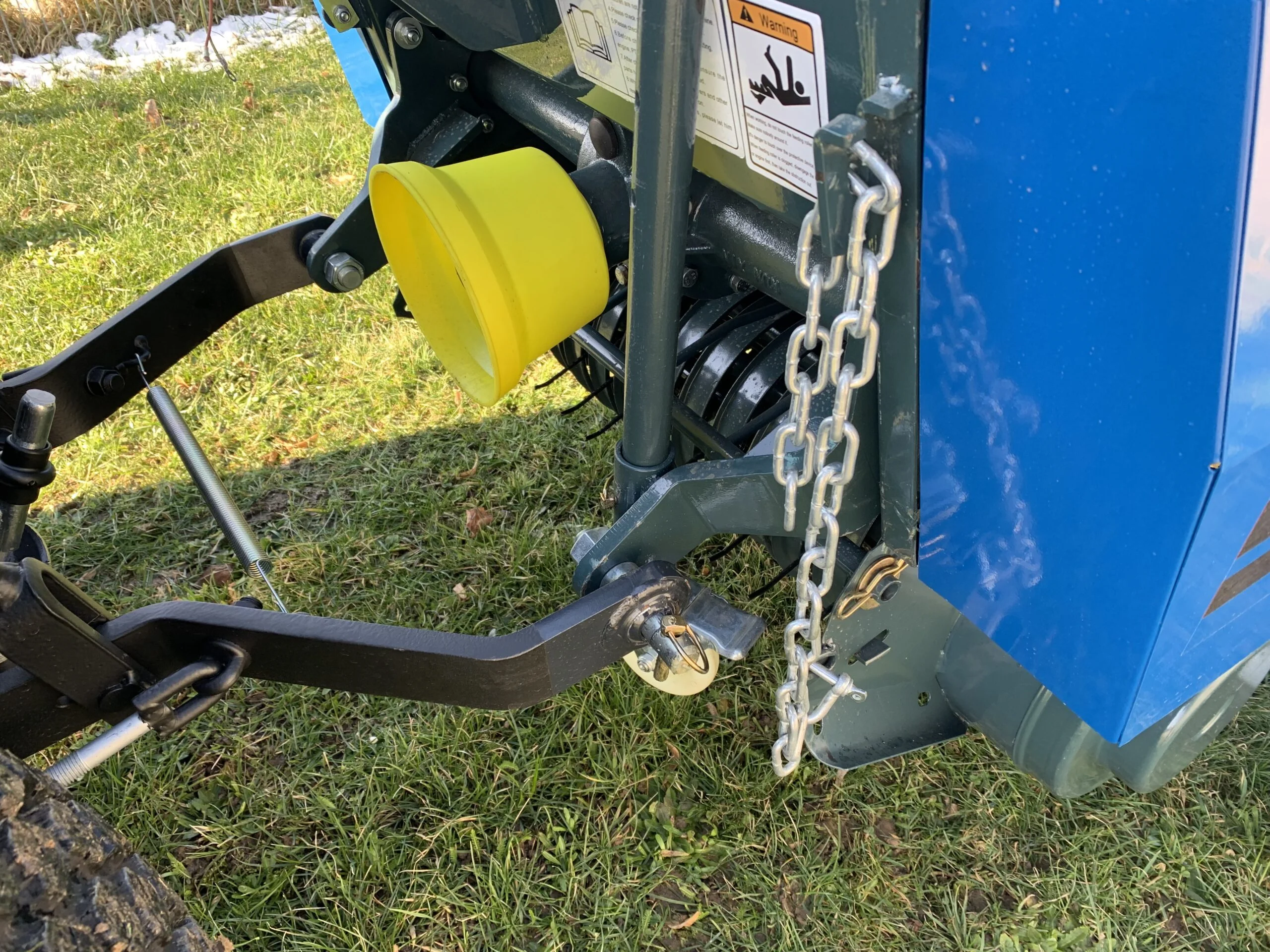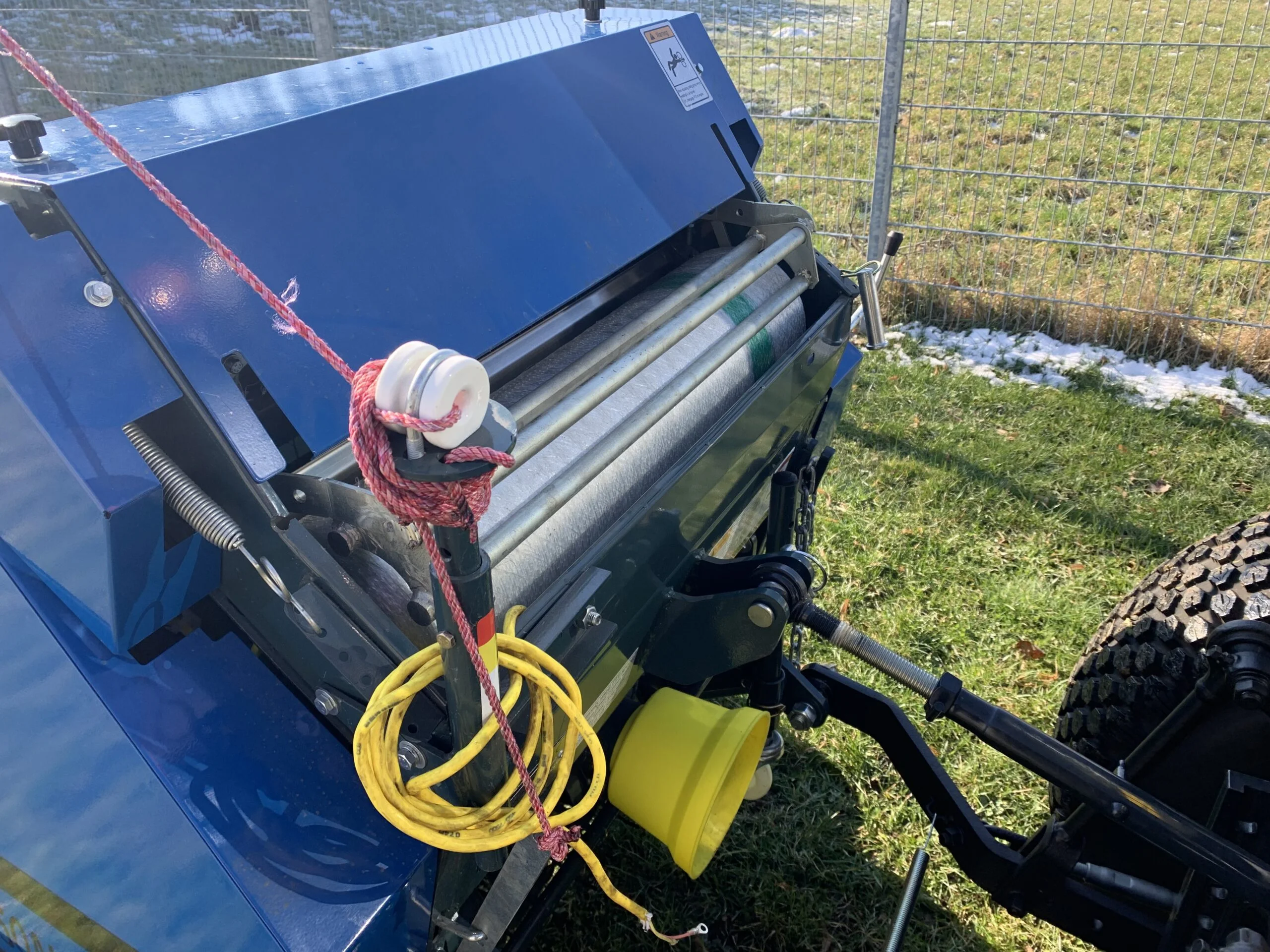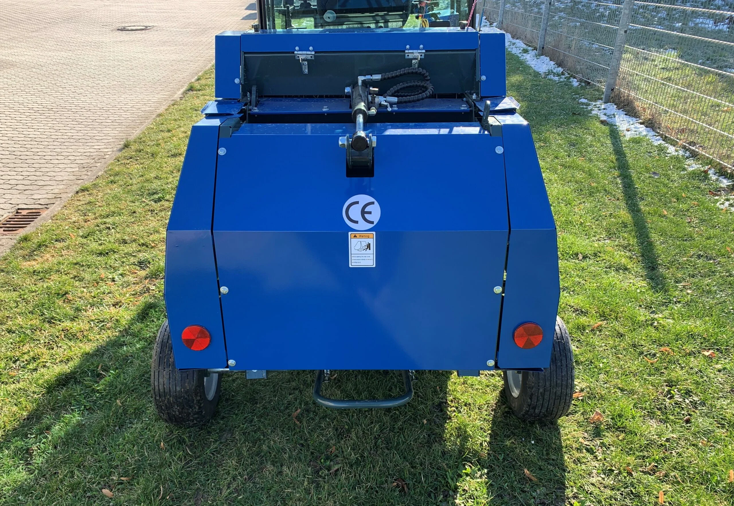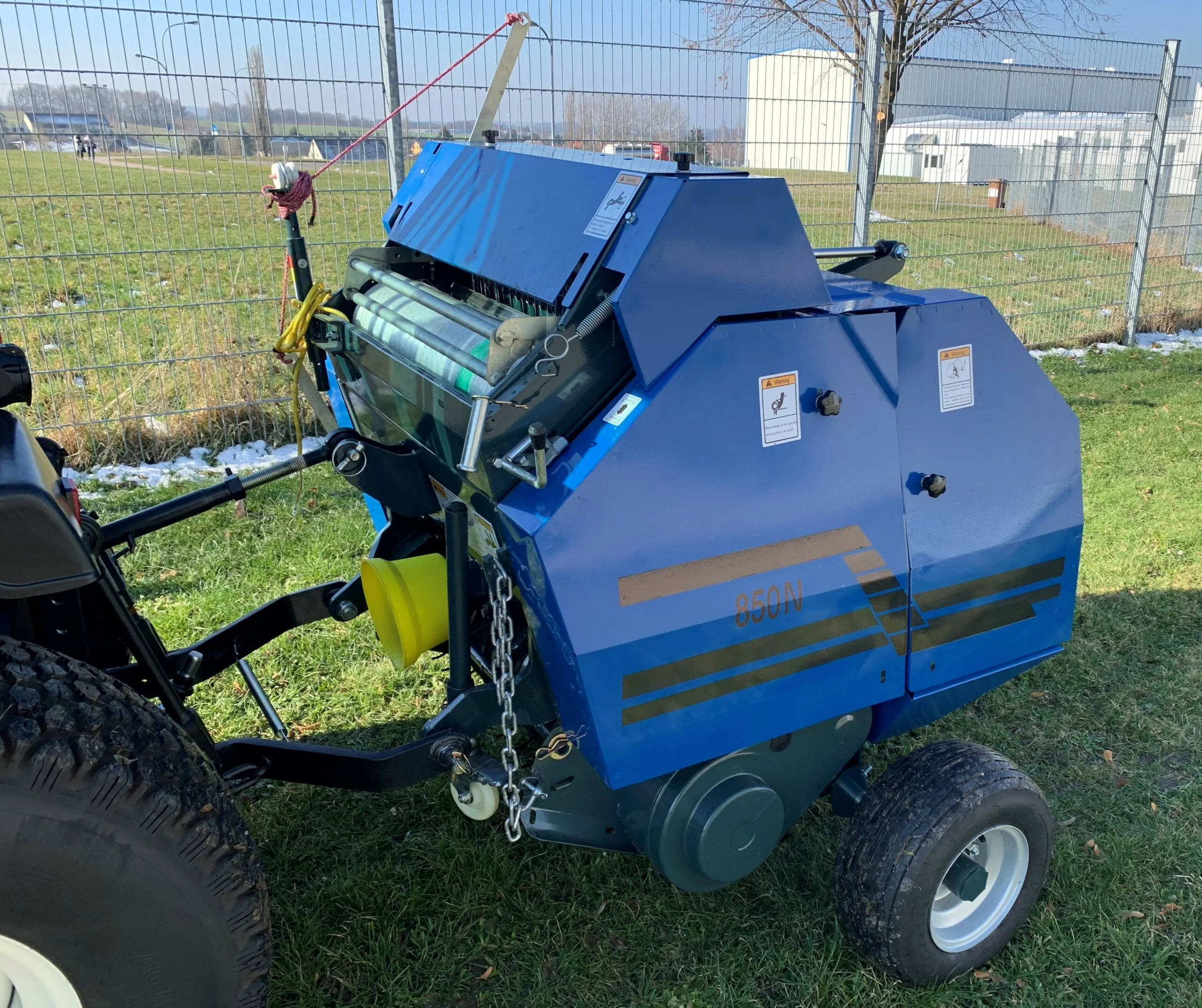 Die Rundballenpresse mit Netz wird in der Heck-3-Punkt des Schleppers aufgenommen. Der Antrieb erfolgt über die Zapfwelle. Die Presse verfügt über einen eigenen Hydraulikkreislauf, sodass keine weiteren Hydraulikanschlüsse am Traktor benötigt werden.