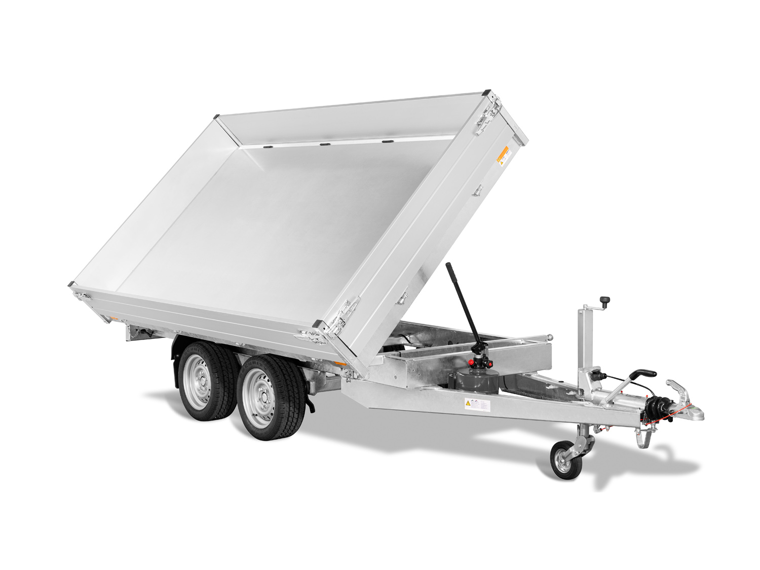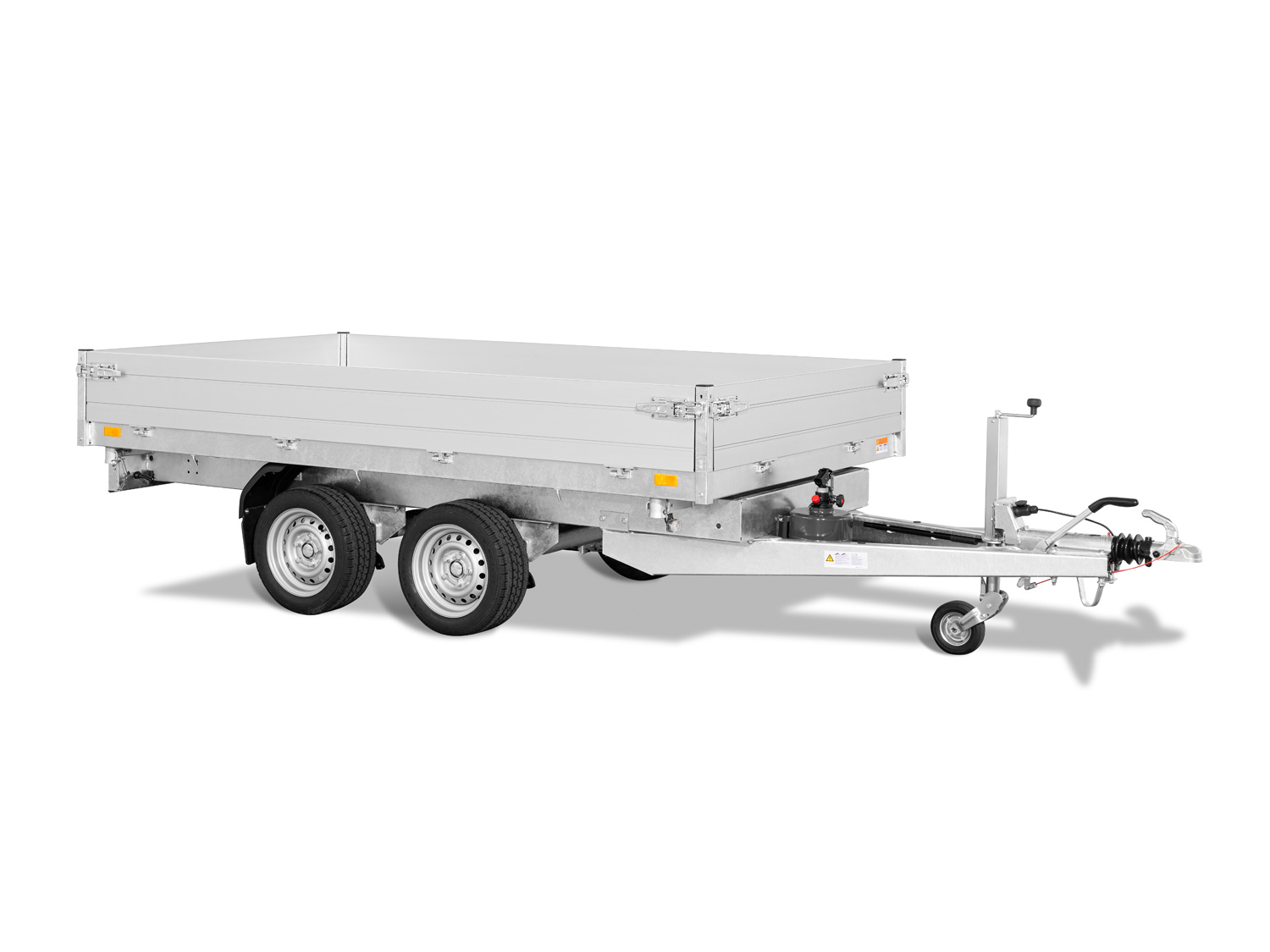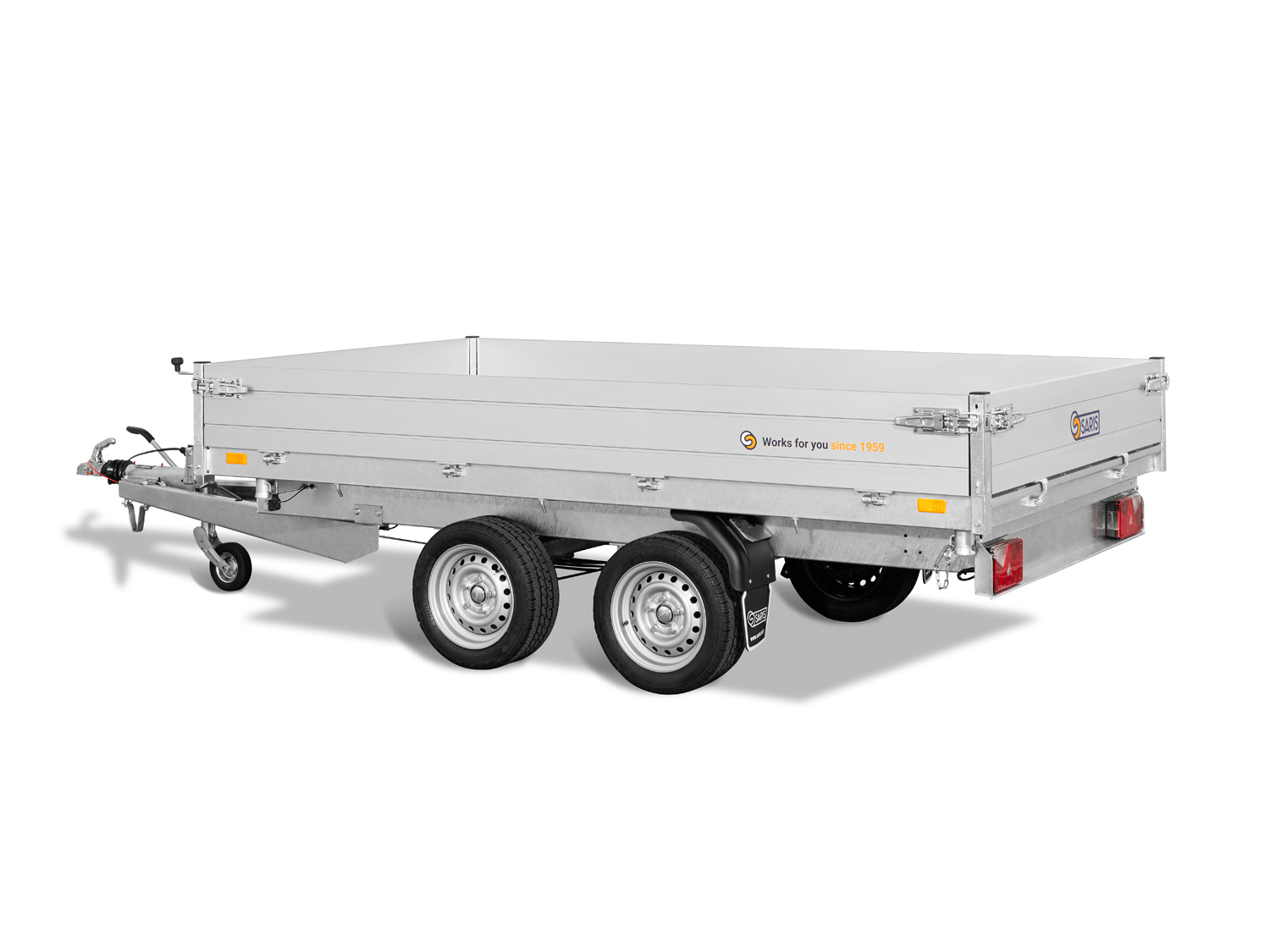 Der Saris K3 306 170 2700 2 ist ein robuster 3-Seiten-Kipper mit einer niedrigen Ladeflächenhöhe und einer stabilen Konstruktion. Sein vollständig verschweißtes und feuerverzinktes Chassis sorgt für maximale Haltbarkeit und Langlebigkeit. Die doppelwandigen Aluminium-Bordwände sind 30 cm hoch und mit Spannverschlüssen ausgestattet. Das schwere Automatik-Stützrad gewährleistet eine sichere Stabilität. Zur Ladungssicherung sind acht geräuschhemmende Zurrbügel (800 daN) sowie sechs Seilhaken und Scharniere mit Netzhaken vorhanden. Die Stahlplatte auf Holzboden sorgt für zusätzliche Robustheit, und der große Kippwinkel von 42 Grad ermöglicht eine effiziente Entladung.