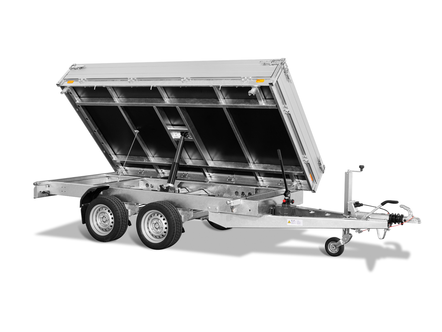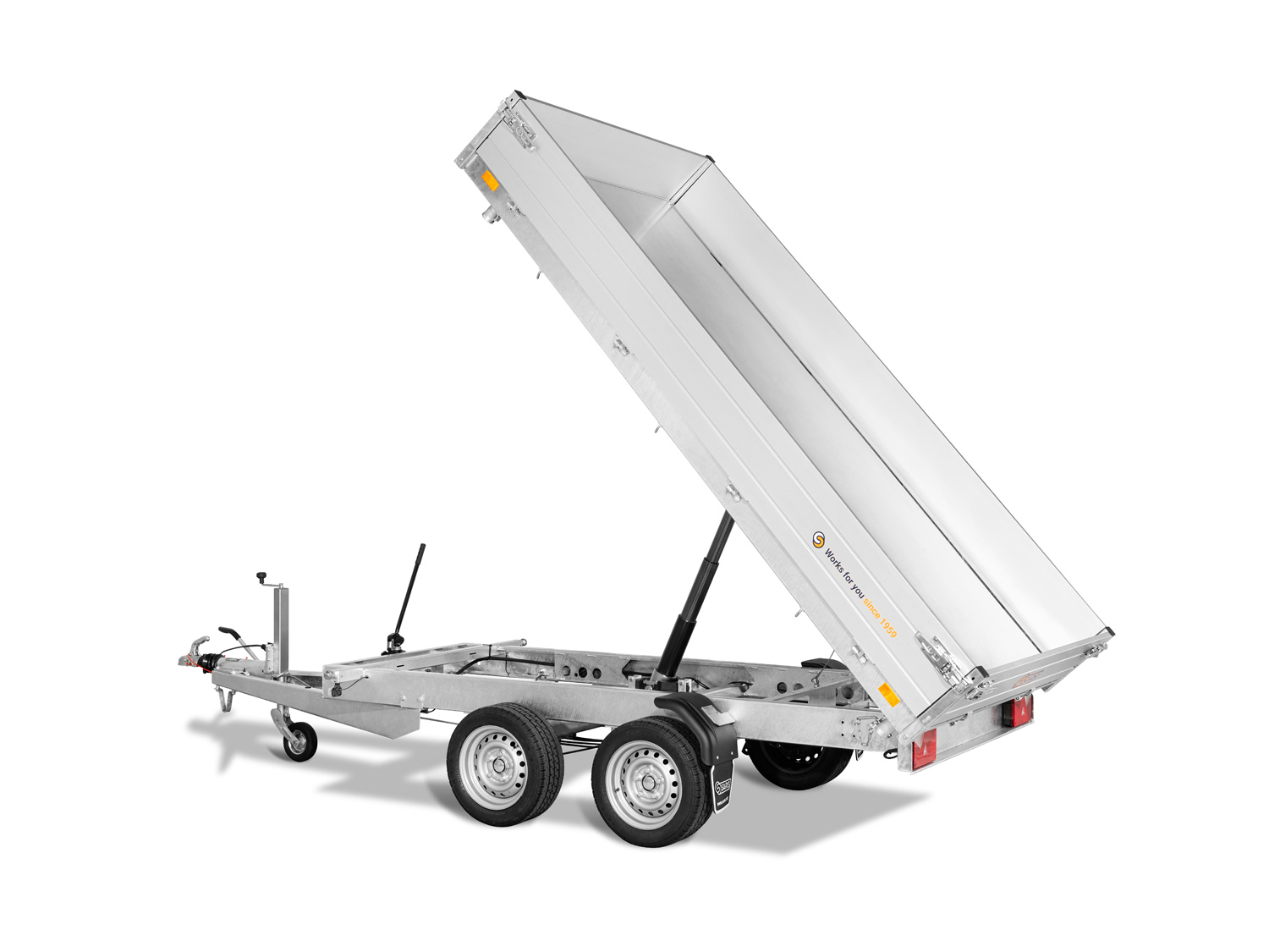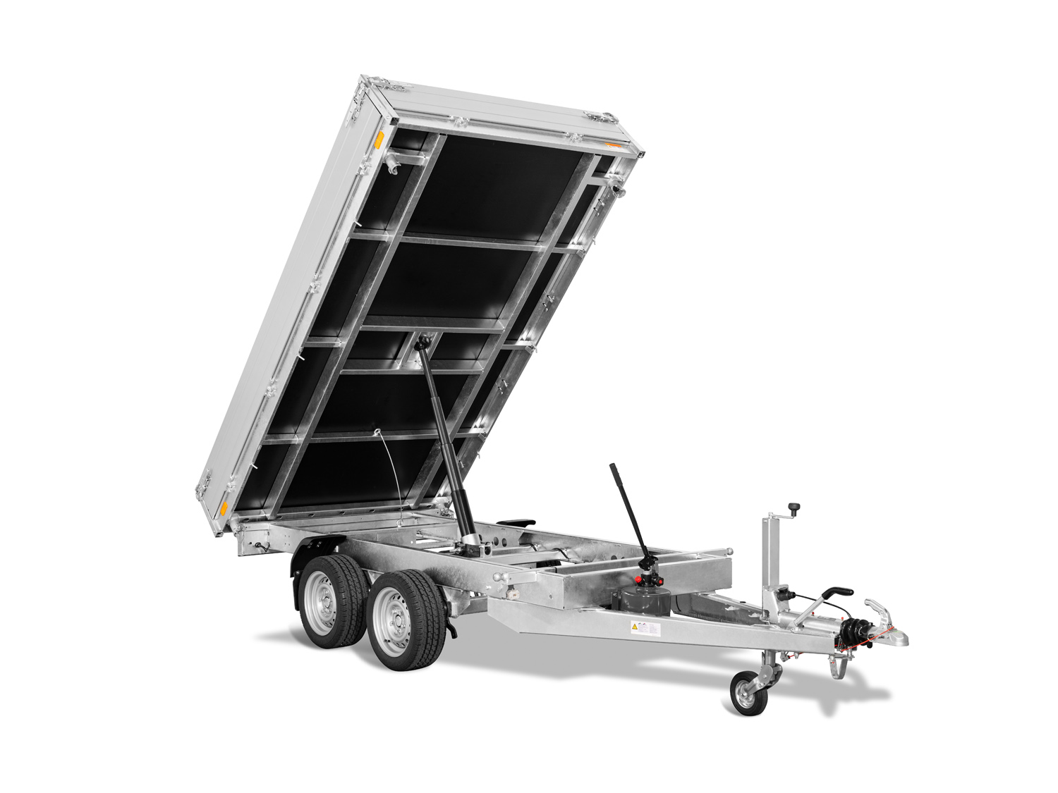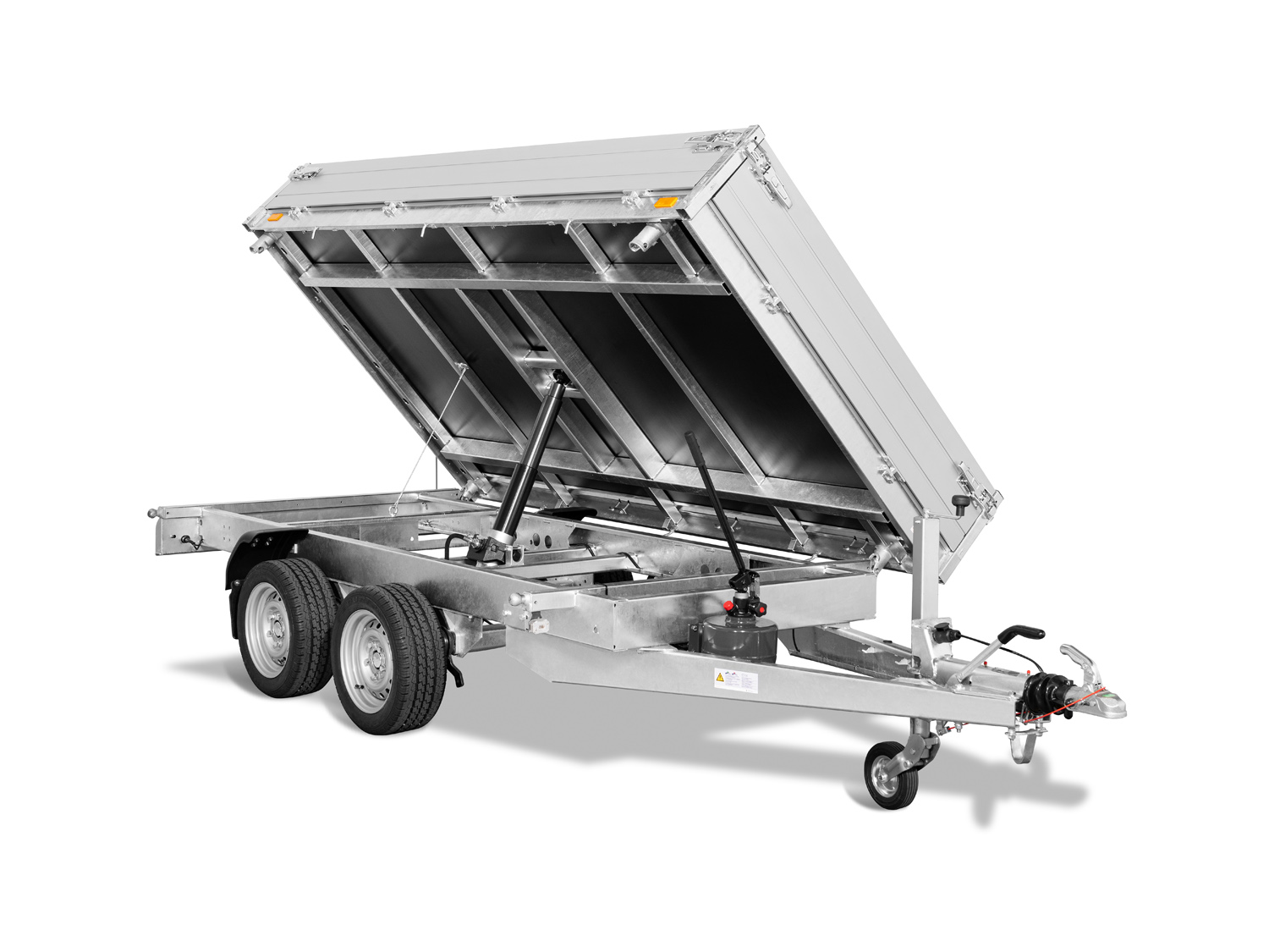 Der Saris K3 306 170 2700 2 ist ein robuster 3-Seiten-Kipper mit einer niedrigen Ladeflächenhöhe und einer stabilen Konstruktion. Sein vollständig verschweißtes und feuerverzinktes Chassis sorgt für maximale Haltbarkeit und Langlebigkeit. Die doppelwandigen Aluminium-Bordwände sind 30 cm hoch und mit Spannverschlüssen ausgestattet. Das schwere Automatik-Stützrad gewährleistet eine sichere Stabilität. Zur Ladungssicherung sind acht geräuschhemmende Zurrbügel (800 daN) sowie sechs Seilhaken und Scharniere mit Netzhaken vorhanden. Die Stahlplatte auf Holzboden sorgt für zusätzliche Robustheit, und der große Kippwinkel von 42 Grad ermöglicht eine effiziente Entladung.