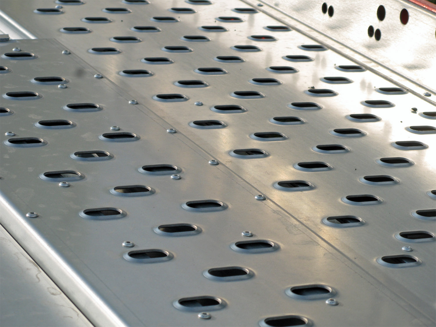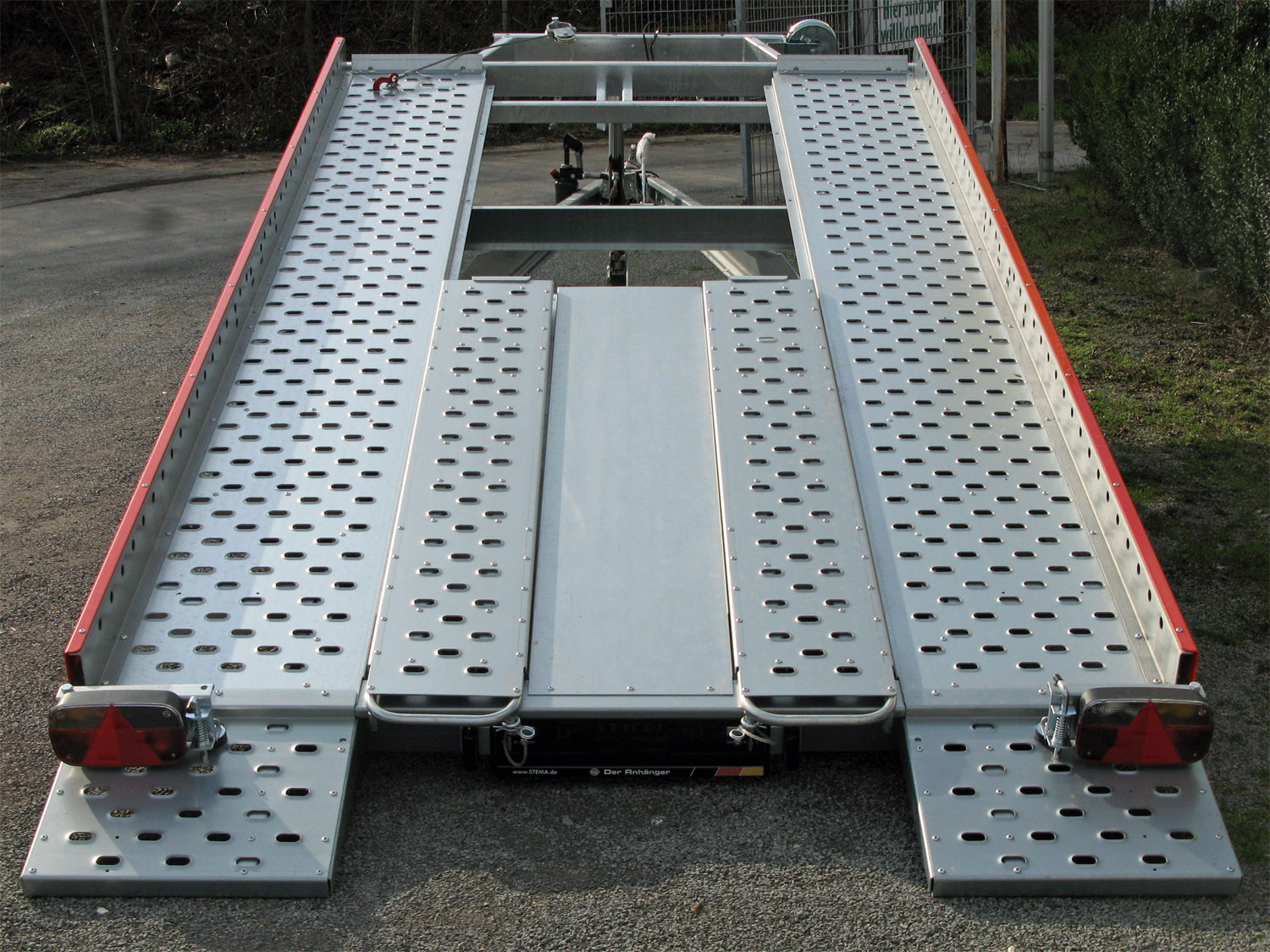 Dank der extra breiten, gelochten und rutschfesten Laufschienen aus Zinkblech mit Langlöchern für Spanngurte wird der Transport von Fahrzeugen mit verschiedenen Radständen erleichtert. Zusätzlich ermöglichen die angebauten Auffahrschienen ein müheloses Be- und Entladen.