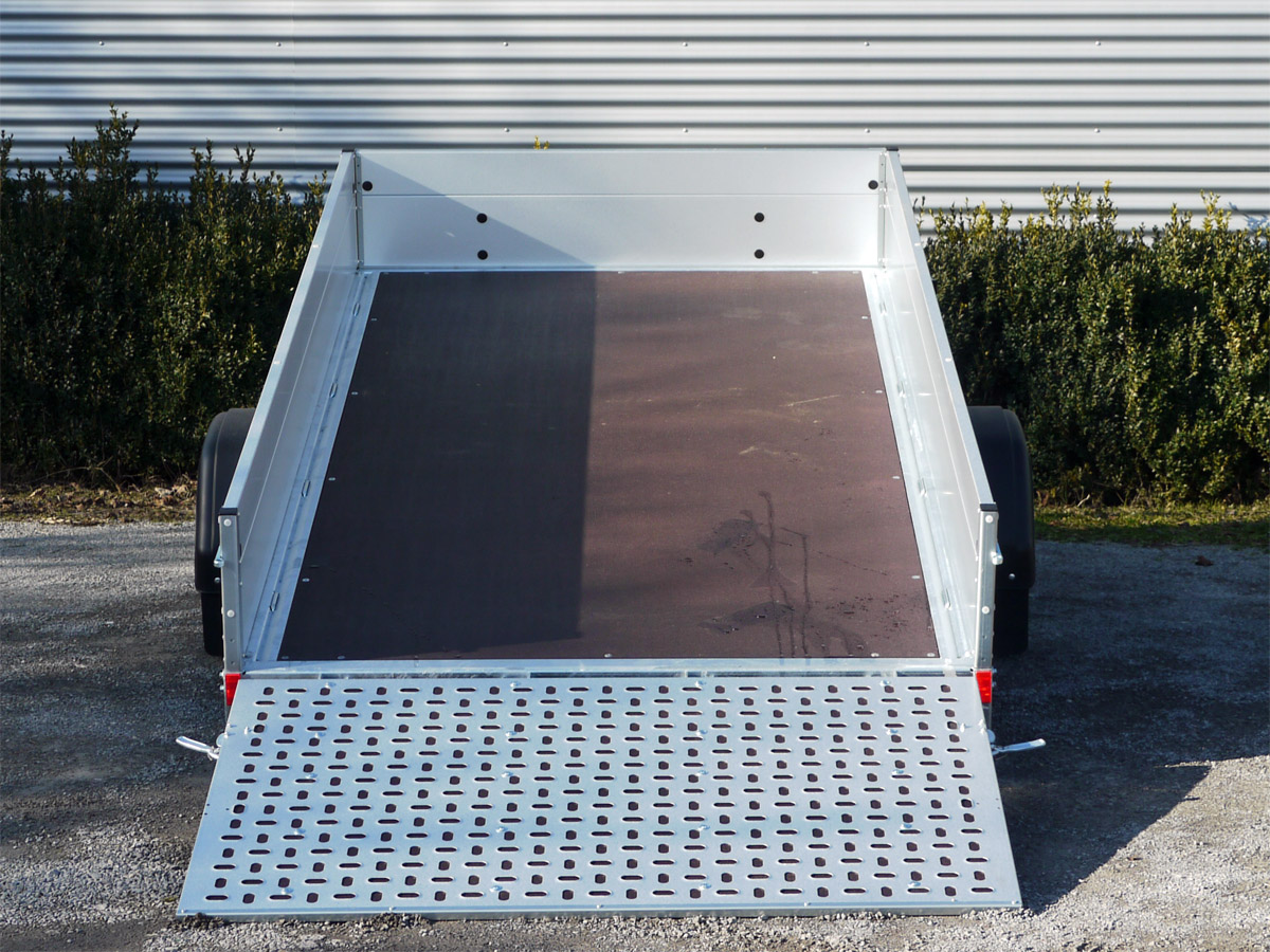 Für optimale Haltbarkeit ist das Fahrgestell und die Kippbrücke aus einer feuerverzinkten Schraub-Schweißkonstruktion gefertigt. Die soliden Bordwände mit GALVALUME-Beschichtung bieten doppelten Korrosionsschutz, während die stabile Sicherheits-V-Deichsel eine ausgezeichnete Straßenlage gewährleistet. Weitere Highlights sind die robuste Gummifederachse mit Einzelradaufhängung, das wartungsfreie Kompaktradlager sowie die rutschhemmende, wasserfeste Siebdruckholzplatte als Bodenbelag.