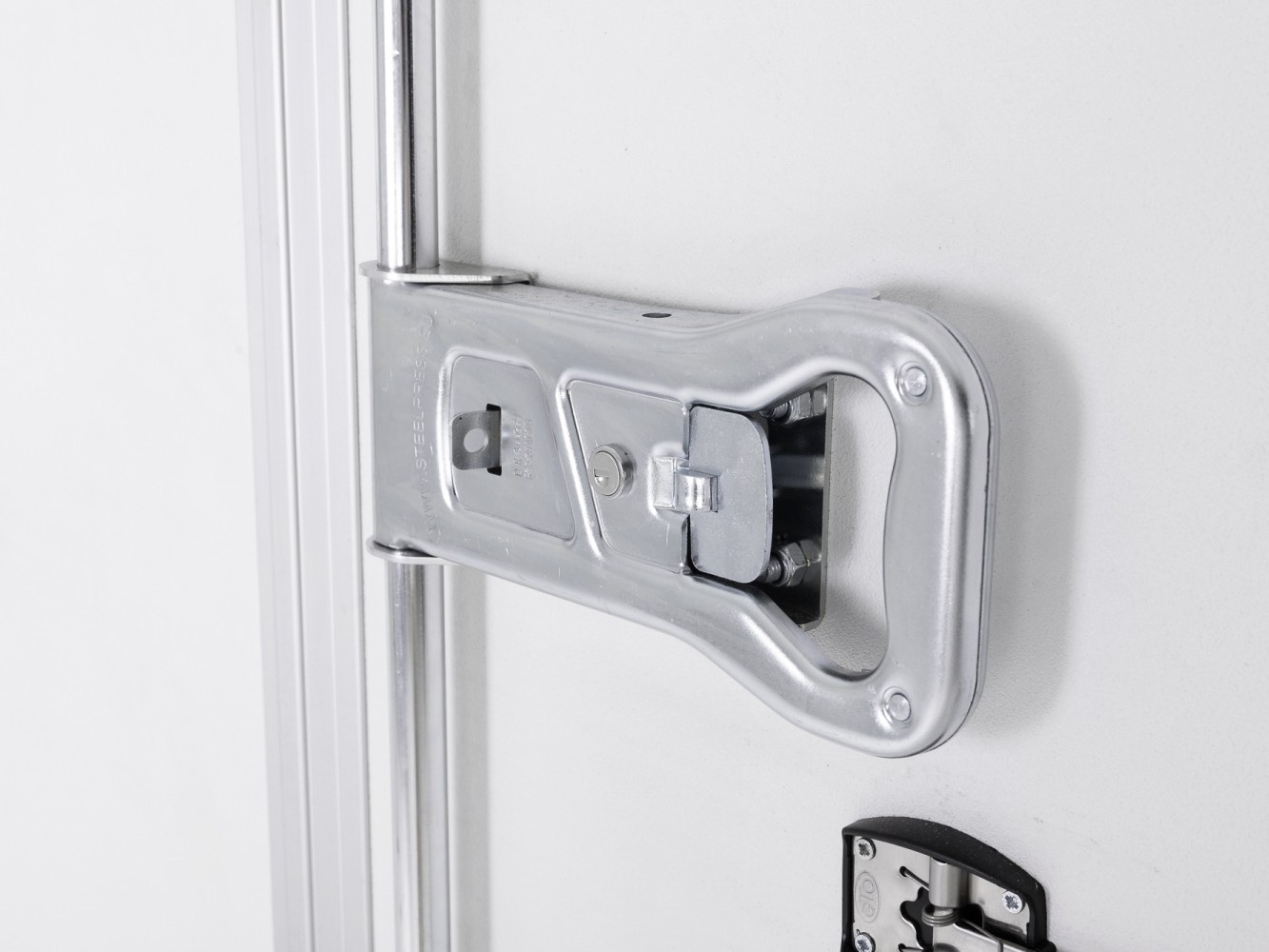 Die Flügeltüren sind mit galvanisch verzinkten Türscharnieren ausgestattet und verfügen über einen abschließbaren Drehstangenverschluss für maximale Sicherheit.