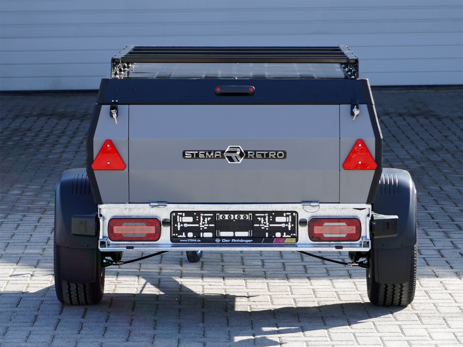 Der Stema RETRO ADVANCED 750 PLUS ist ein robuster Kastenanhänger mit einem abschließbaren Deckel und hochwertiger Pulverbeschichtung in Staubgrau. Dank seiner modernen Beleuchtung und vielseitigen Verzurrmöglichkeiten bietet er sicheren Transport und flexible Nutzungsmöglichkeiten.