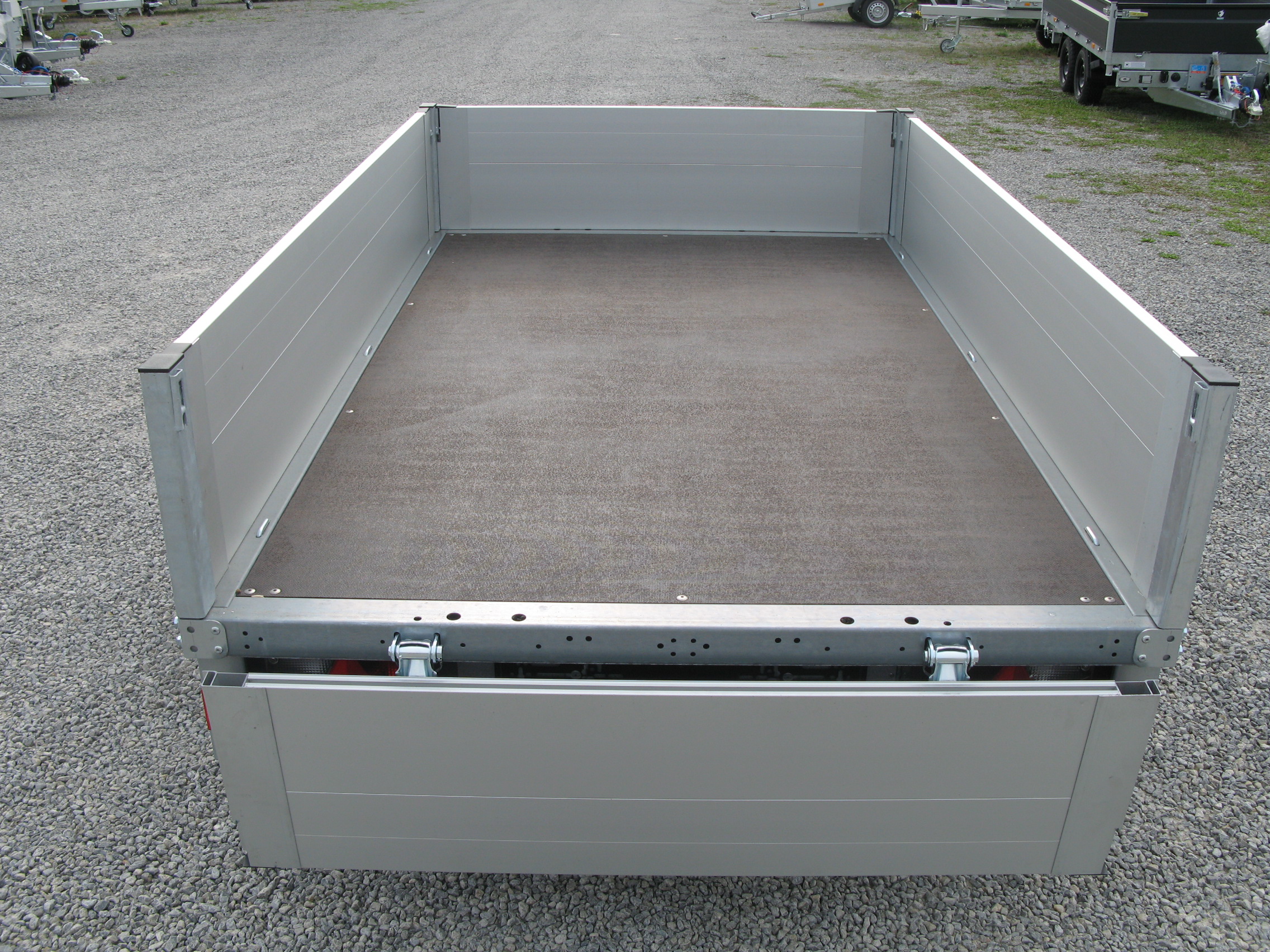 - Bordwände: eloxierte Aluminium-Bordwände, 34,5 cm hoch, allseitig abklapp- und abnehmbar